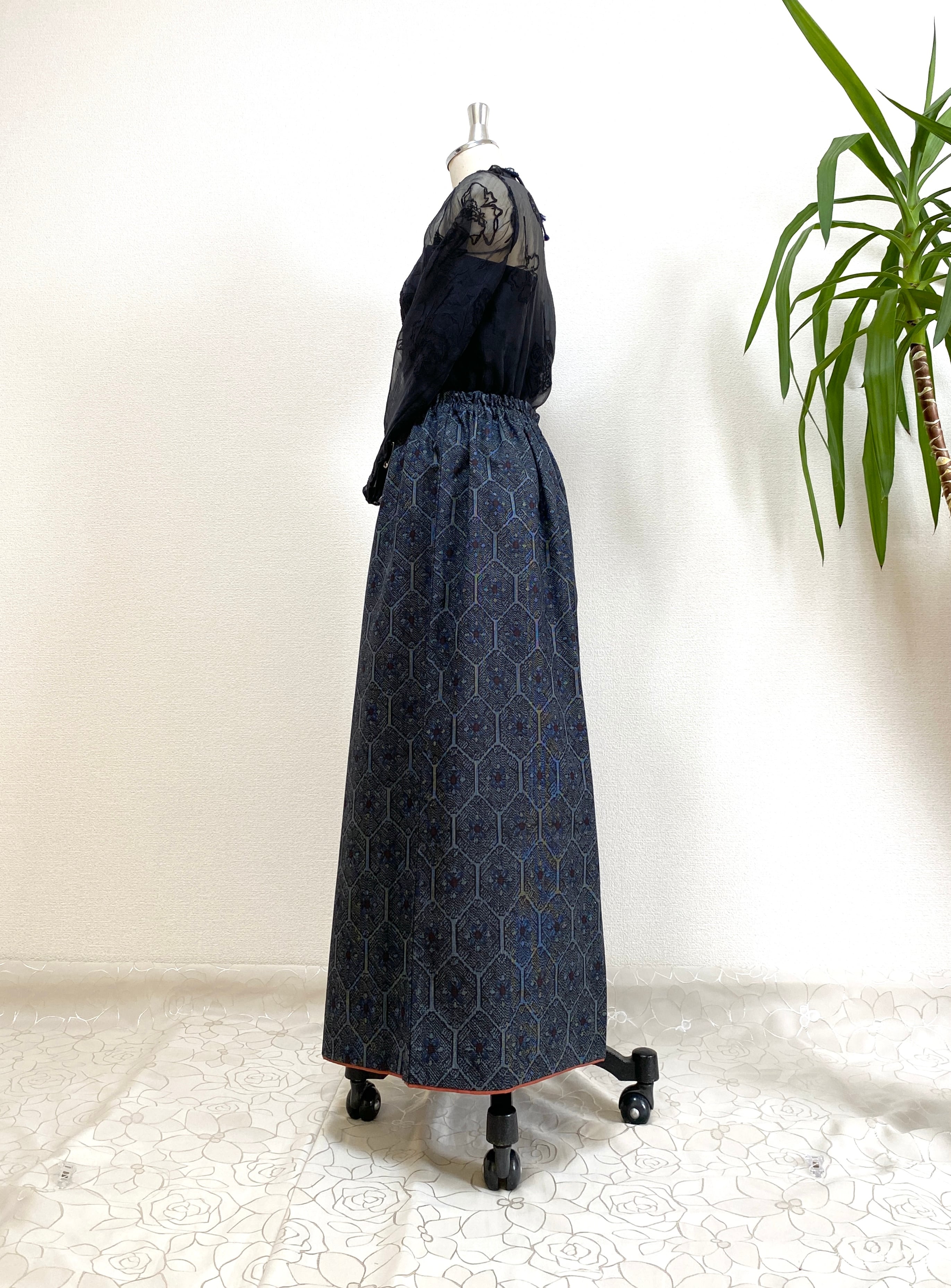 大島紬着物リメイクウエストゴムロングスカートフリーサイズ