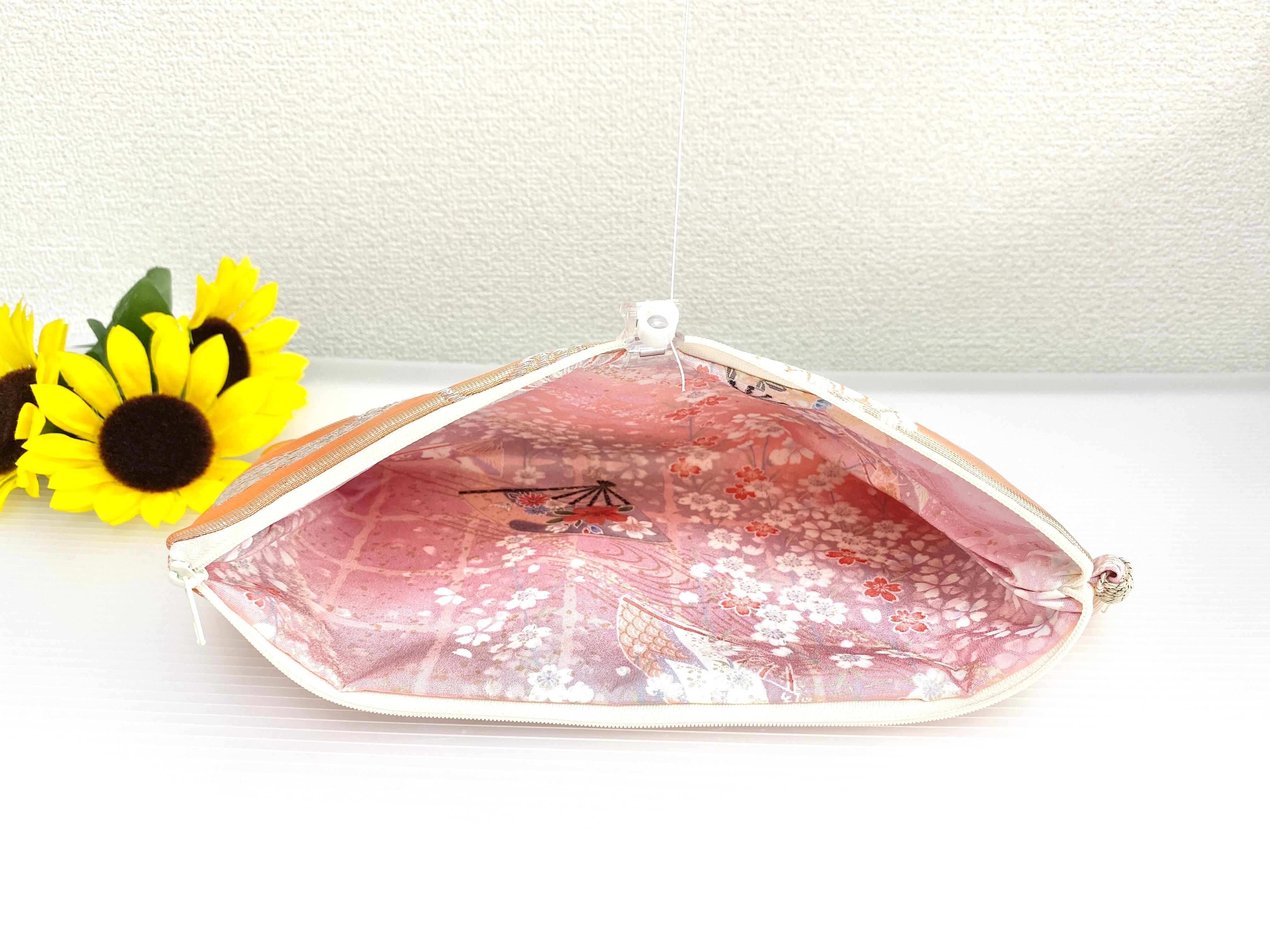 内側の裏生地にも着物布を使用しておりますのでしっかりとした造りの帯リメイクポーチです。