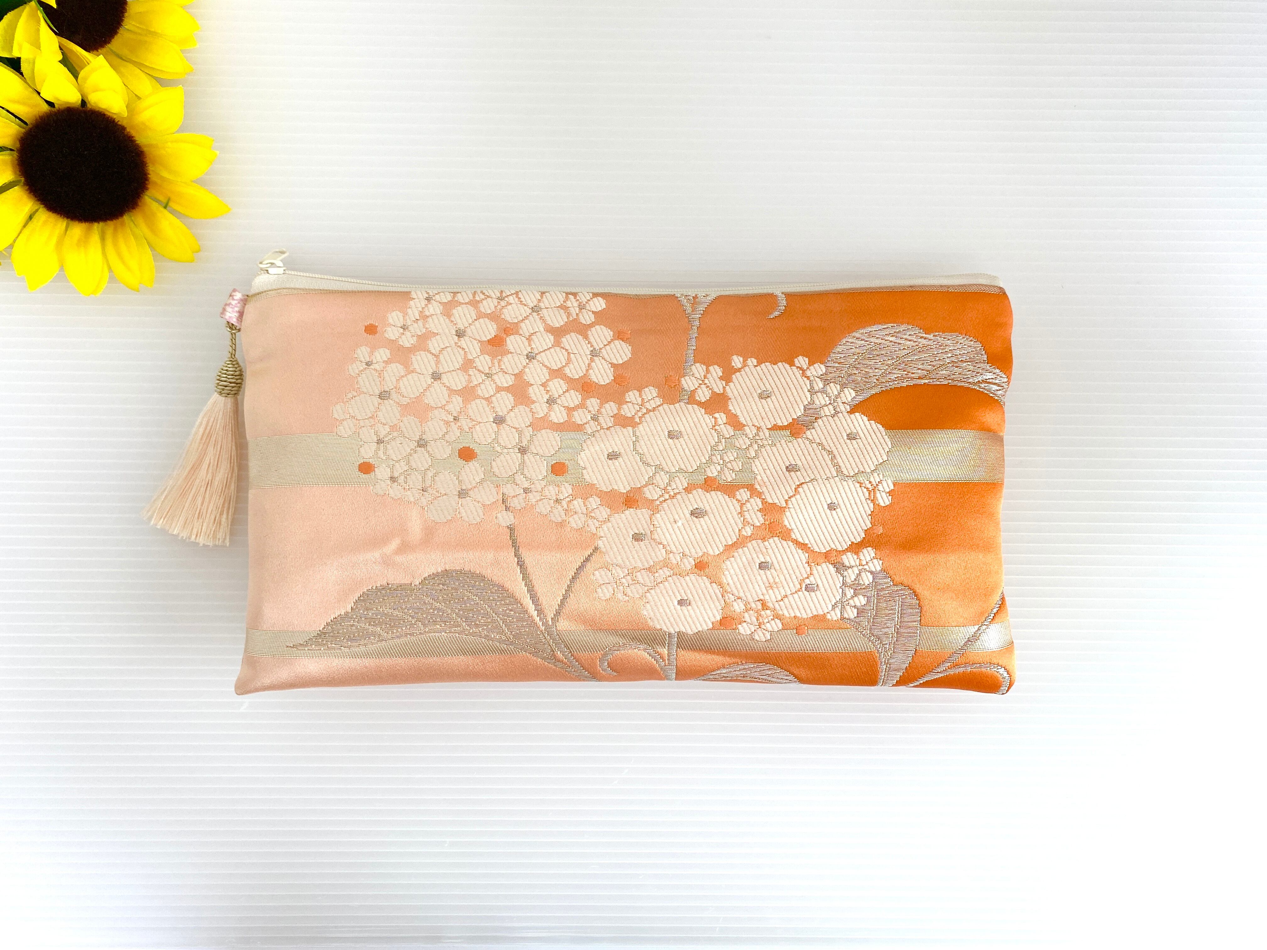 日本の古帯をリメイクして作製したポーチでハンドメイド品です。