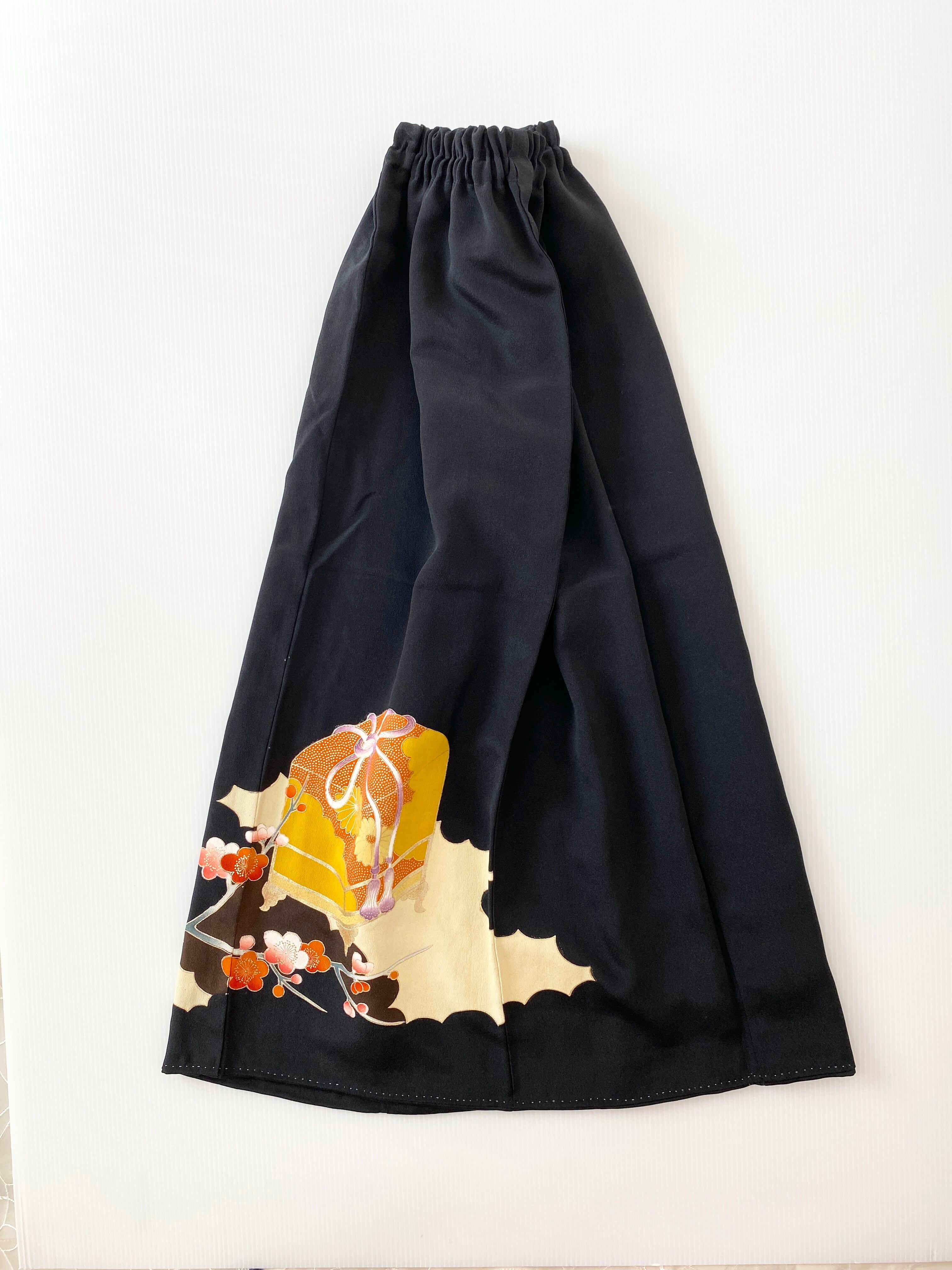 黒留袖着物をリメイクして作製したウエストゴムロングドレススカートフリーサイズです。