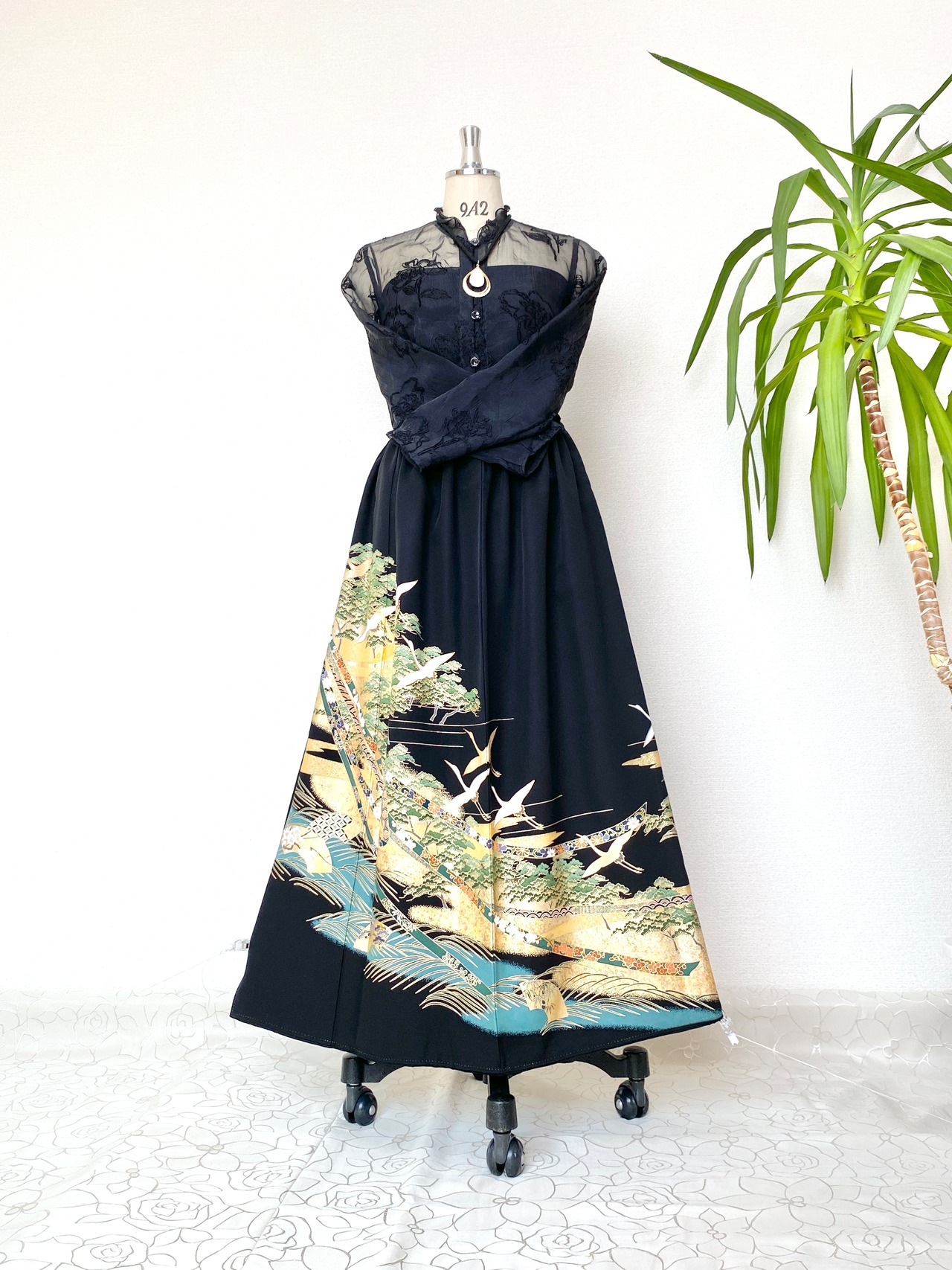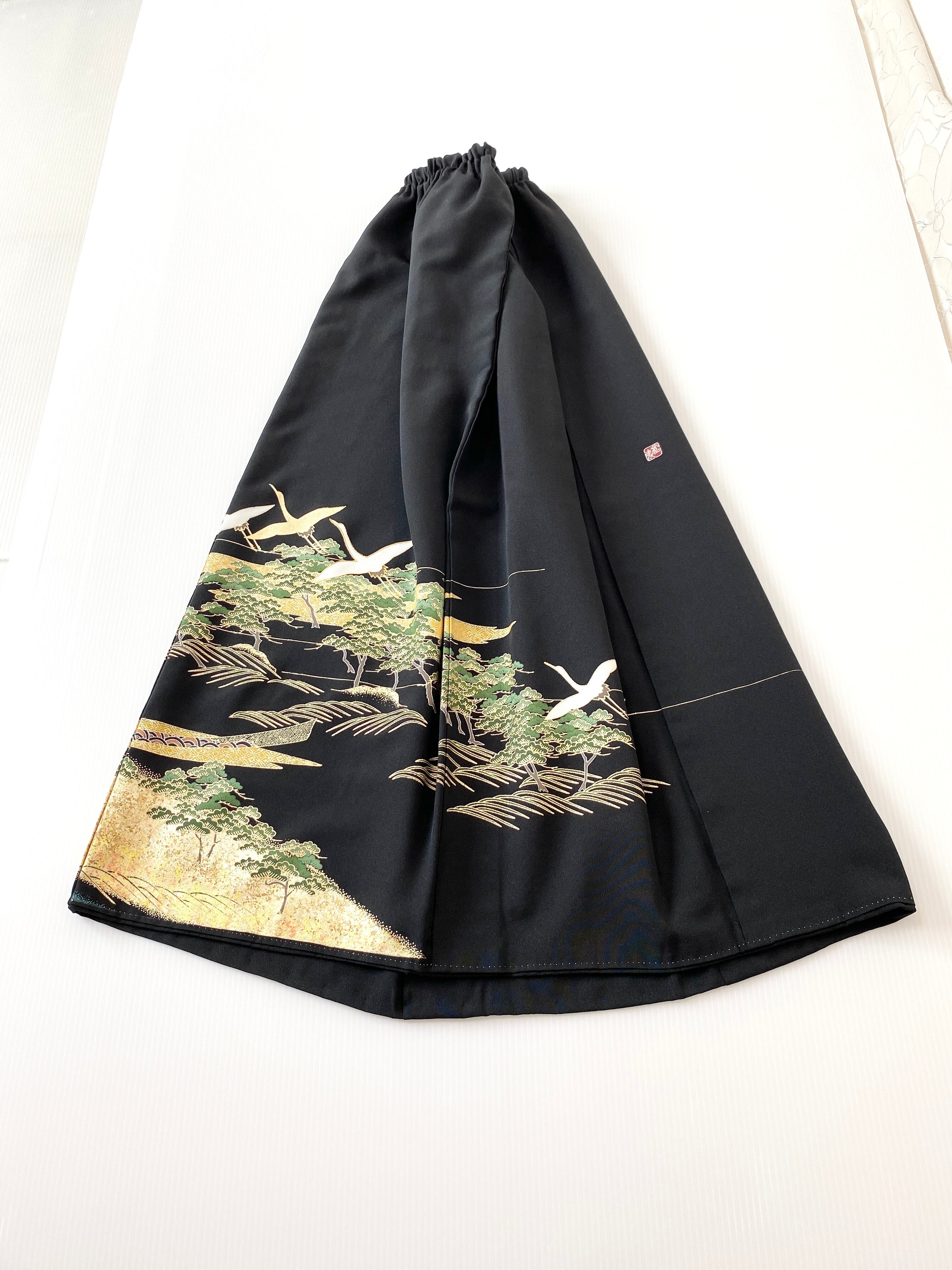黒留袖着物リメイクウエストゴムロングスカートフリーサイズ