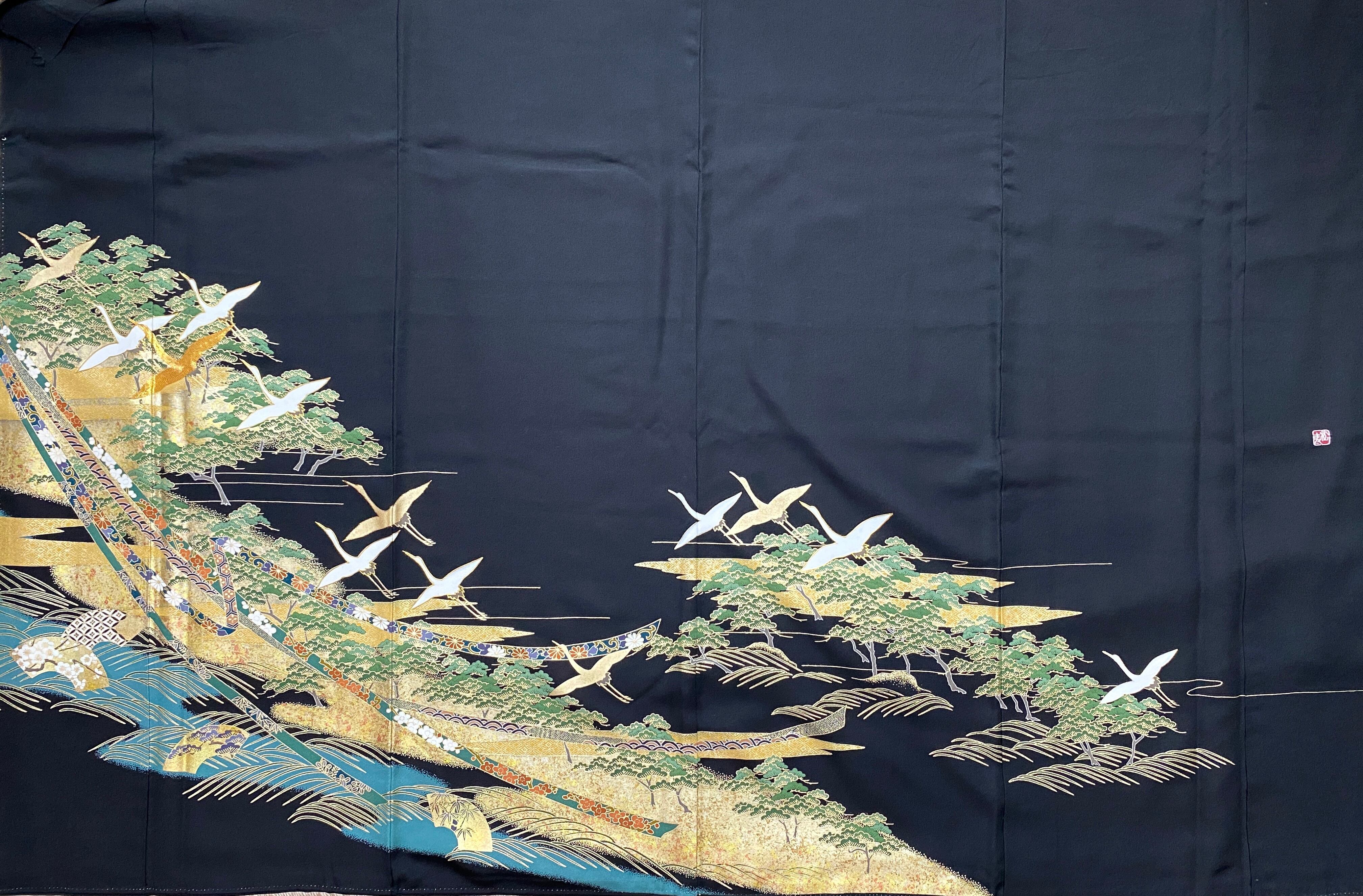 黒留袖着物リメイクウエストゴムロングスカート送料無料フリーサイズ1点物黒留袖着物リメイクウエストゴムロングスカートフリーサイズ黒留袖着物リメイクロングスカートNO.2095