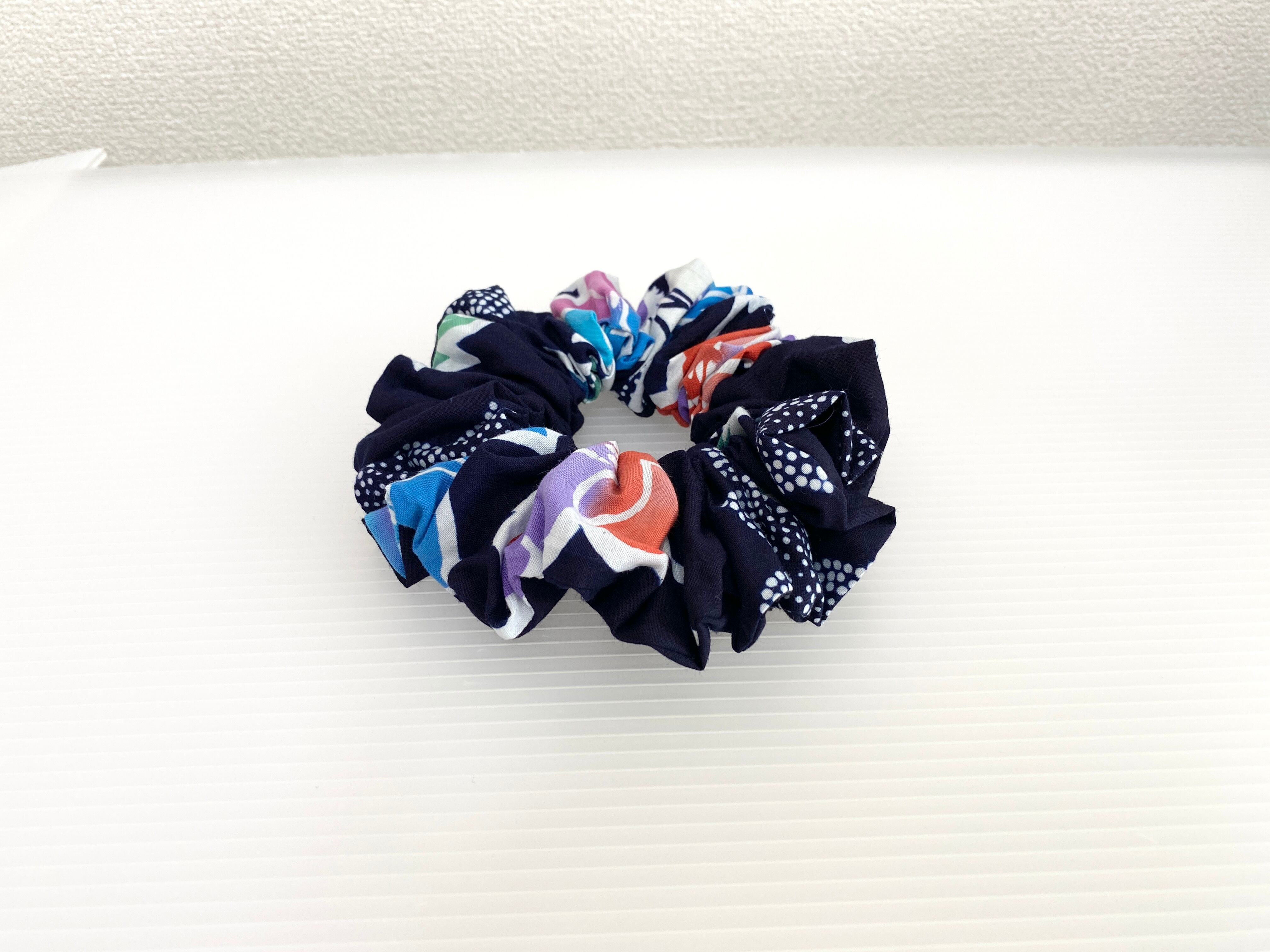 シュシュはお揃いの浴衣の布生地で作成してます。
