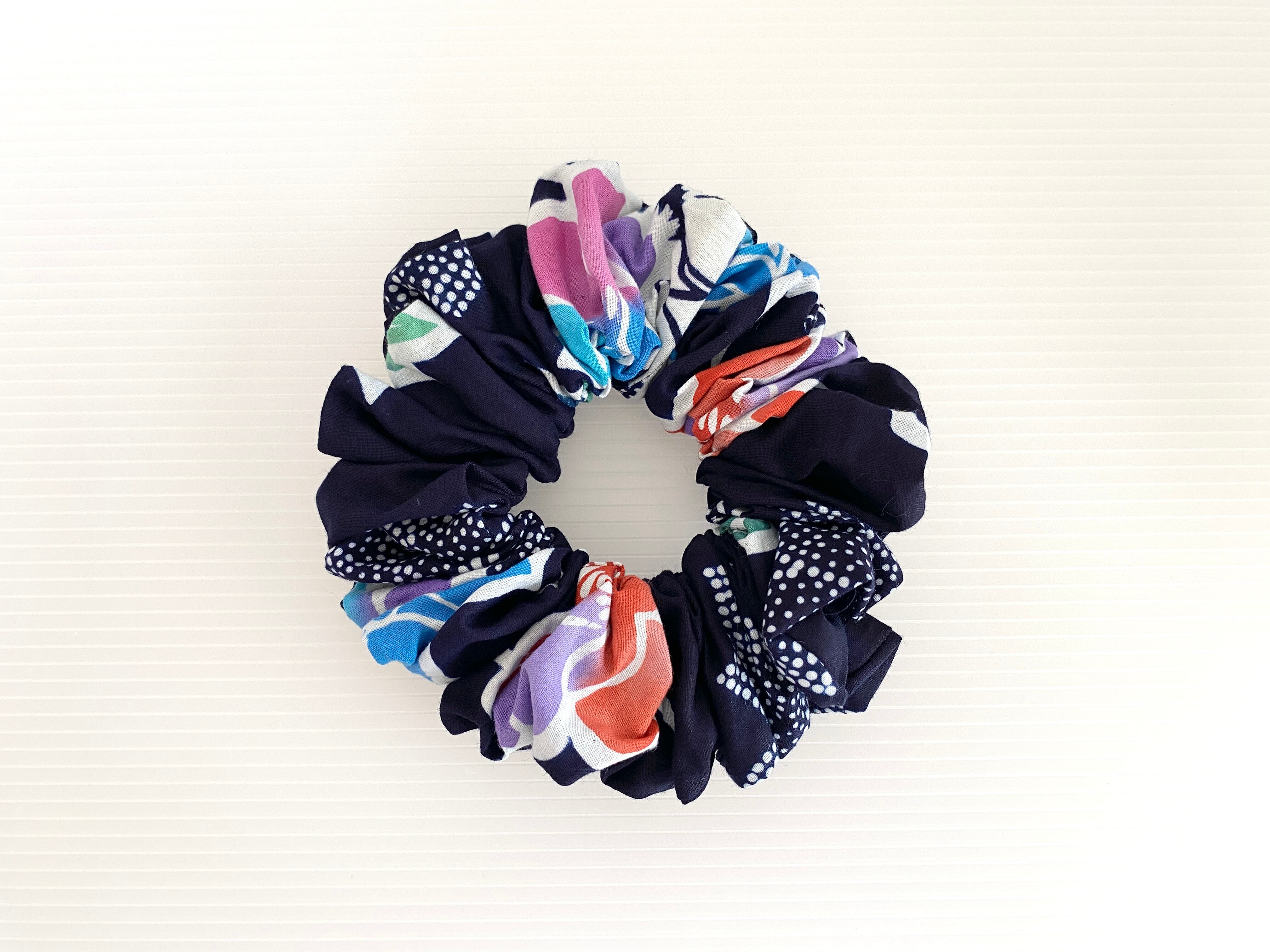 *シュシュは直径約14㎝ 髪を後ろで一つ結びをするとシュシュは2回まわせる感じで使用できます。