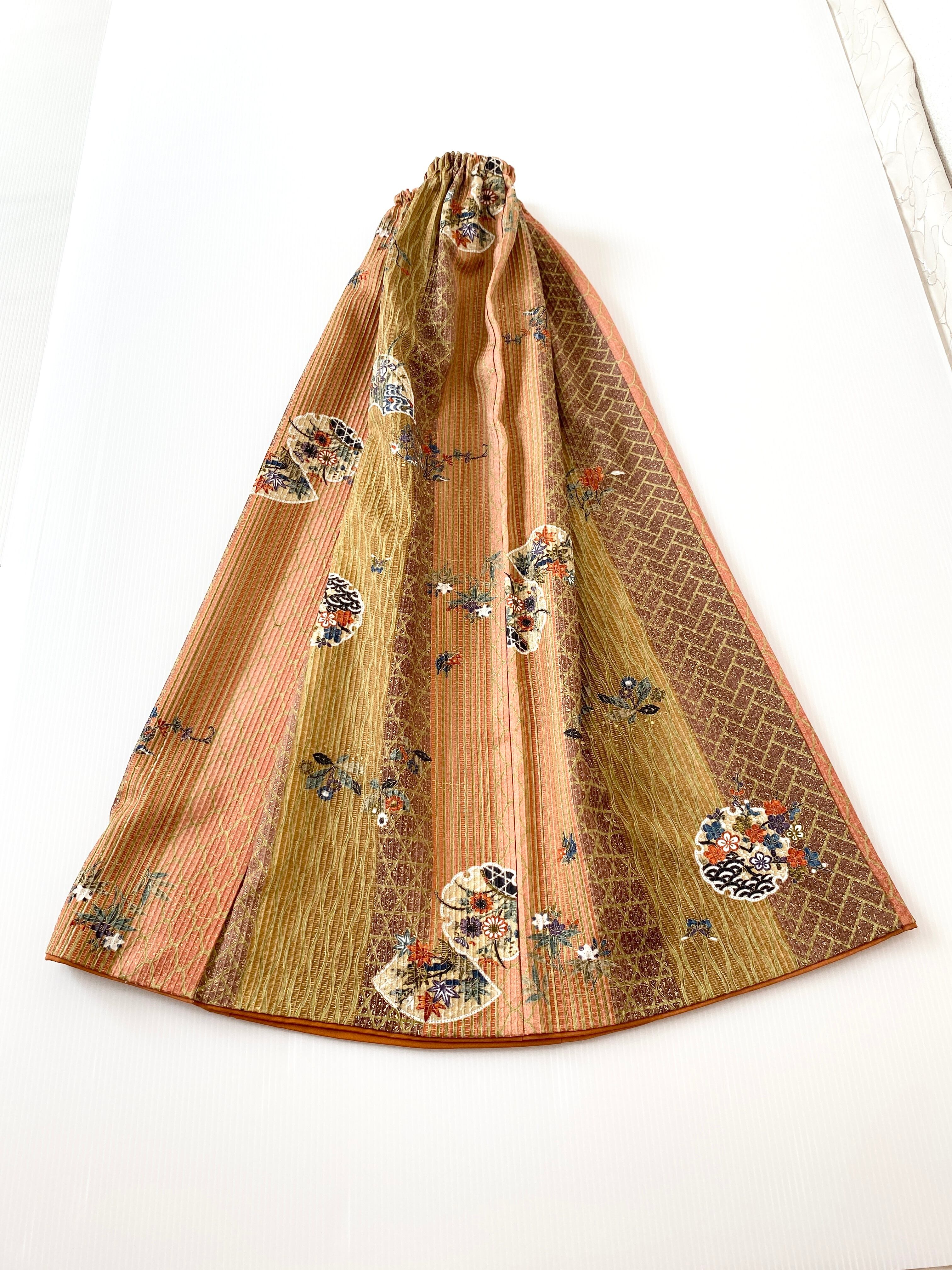 着物をリメイクして作製したウエストゴムロングドレススカートフリーサイズです。