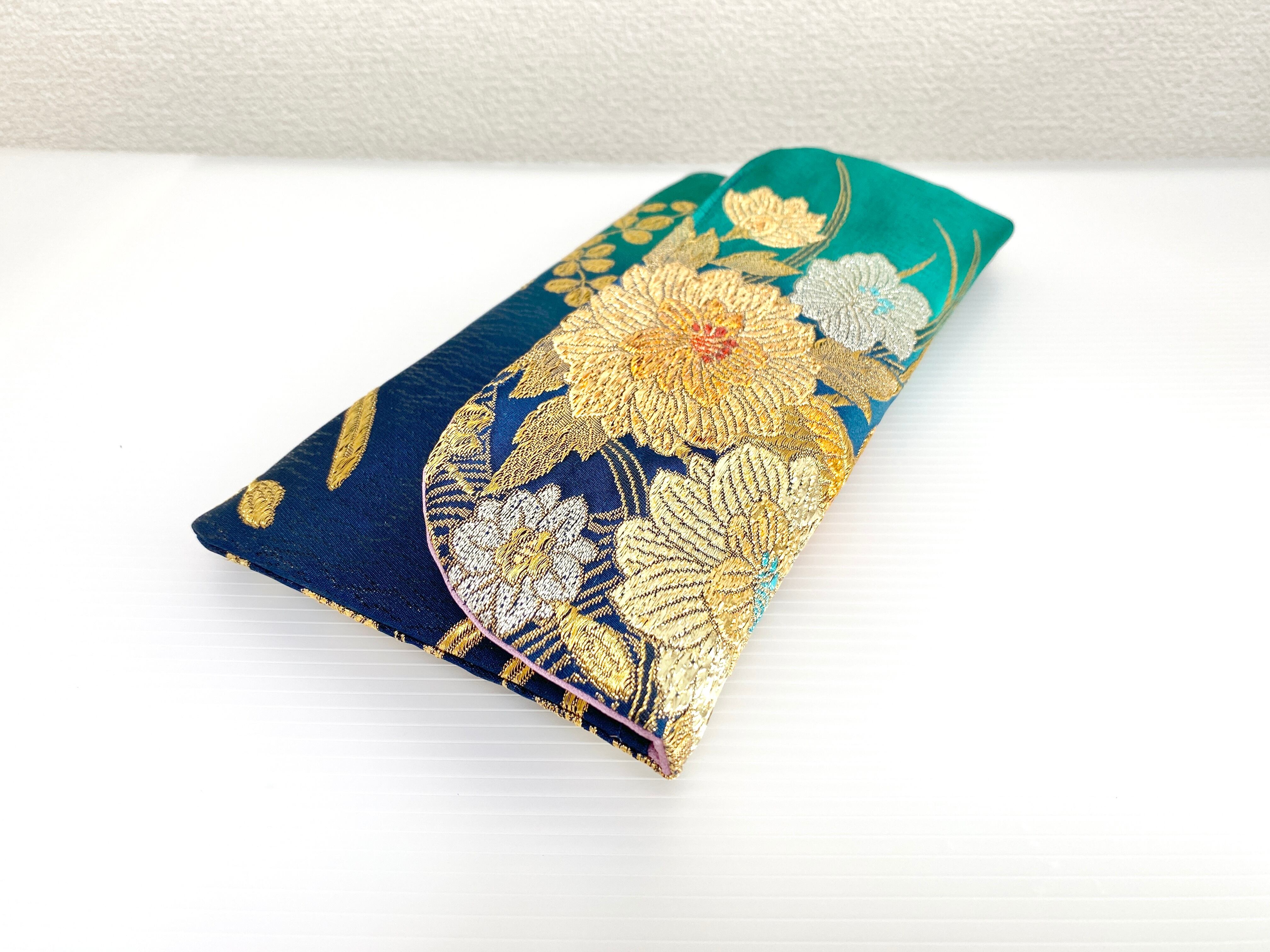 触り心地が滑らかで手にしっくりとくる安心感。絵柄の鮮やかさは日本の着物帯ならではの存在感で素晴らしく華やかな美しさです。