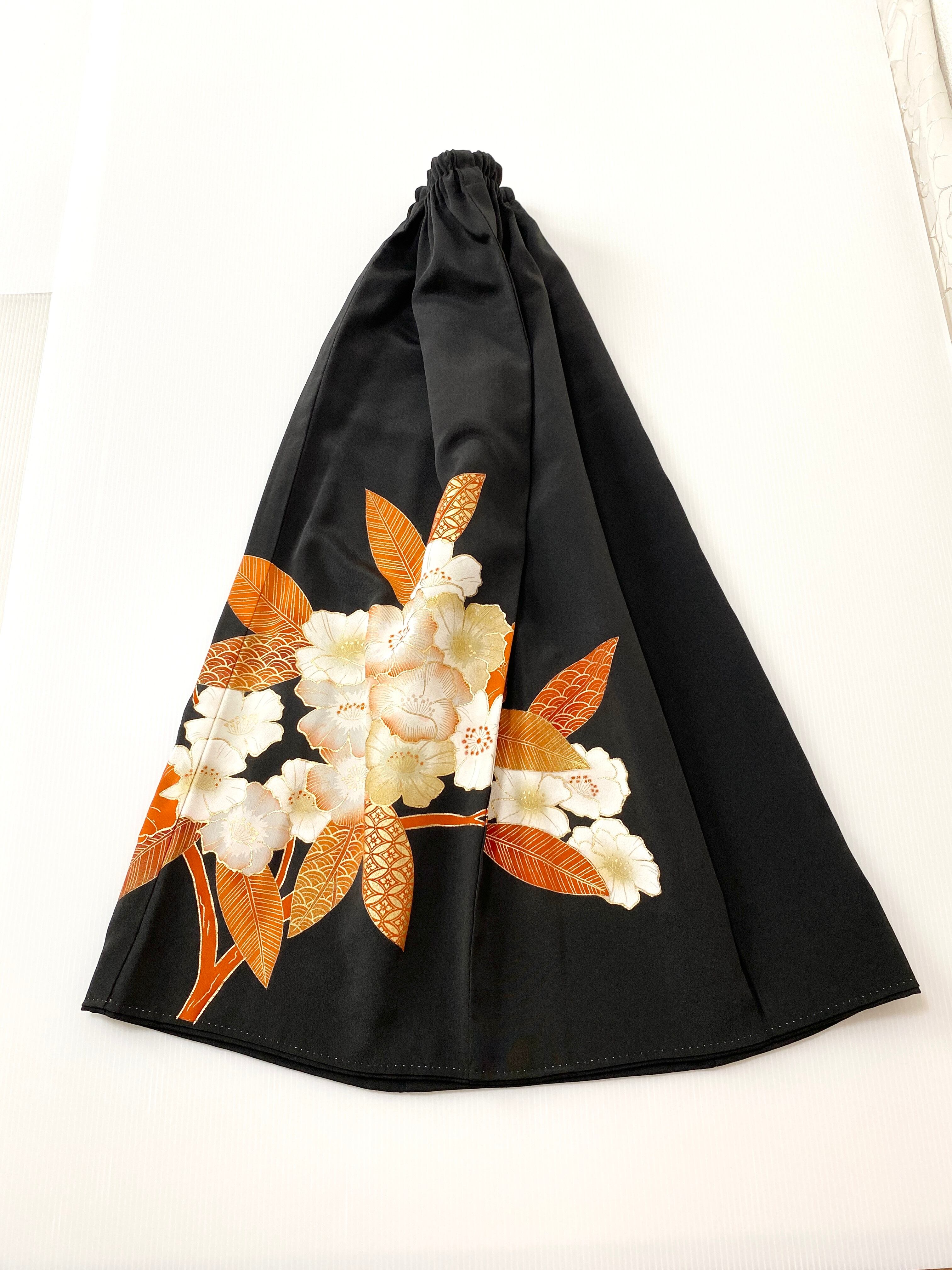 黒留袖着物をリメイクして作製したウエストゴムロングドレススカートフリーサイズです。