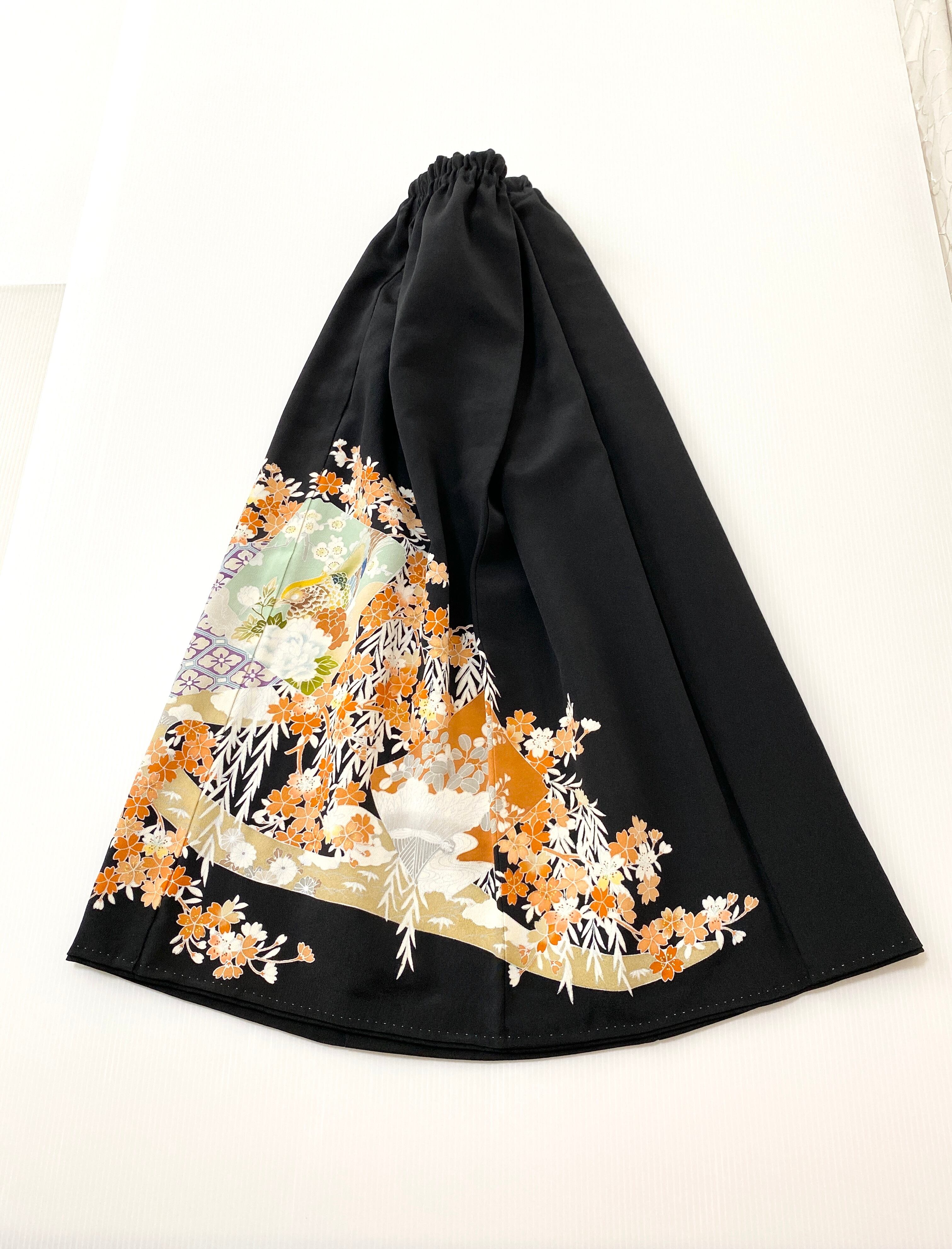 黒留袖着物リメイクウエストゴムロングスカートフリーサイズ