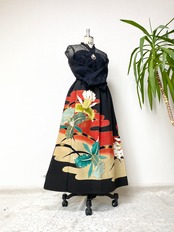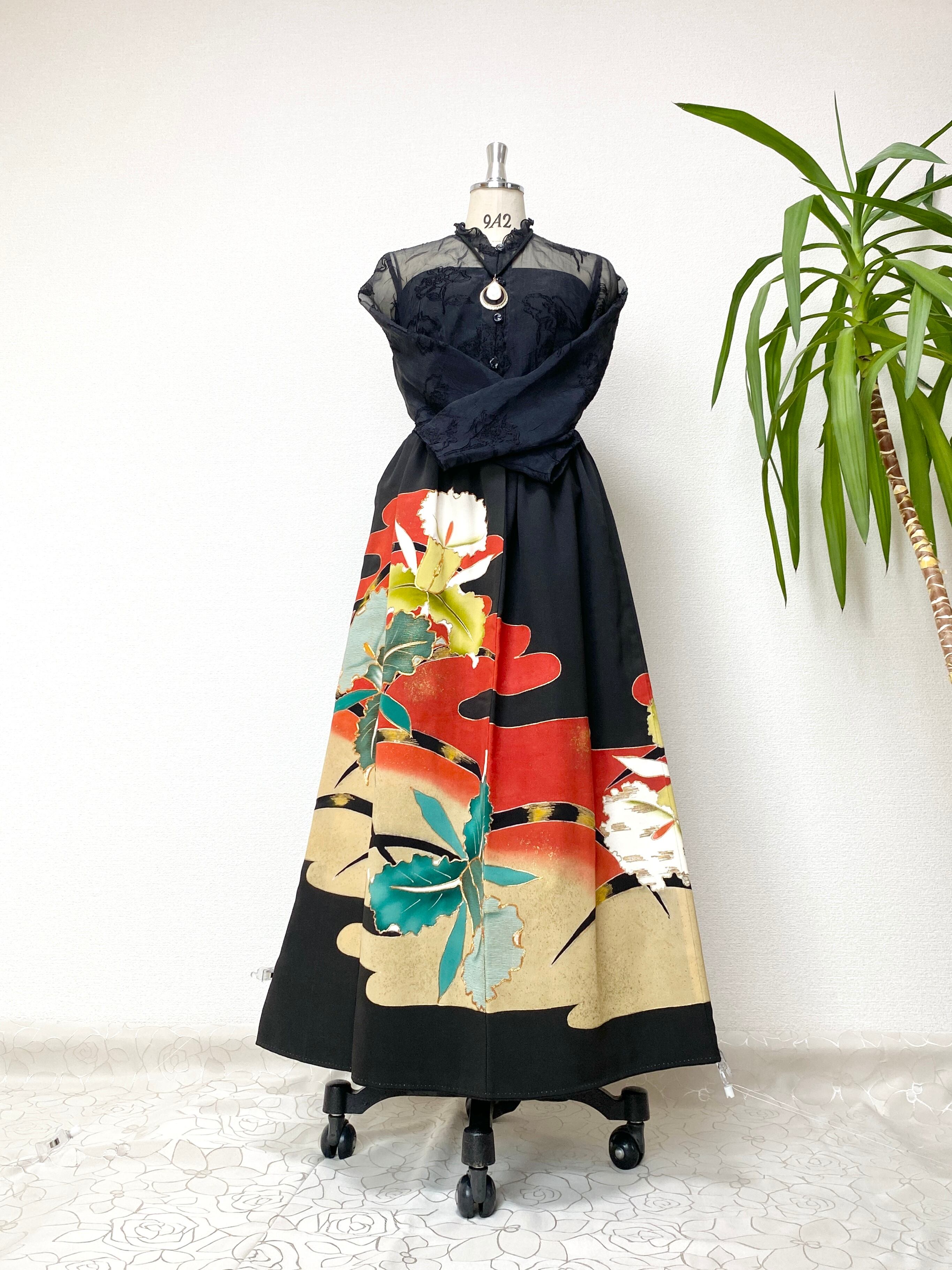 黒留袖着物リメイクウエストゴムロングスカートフリーサイズ