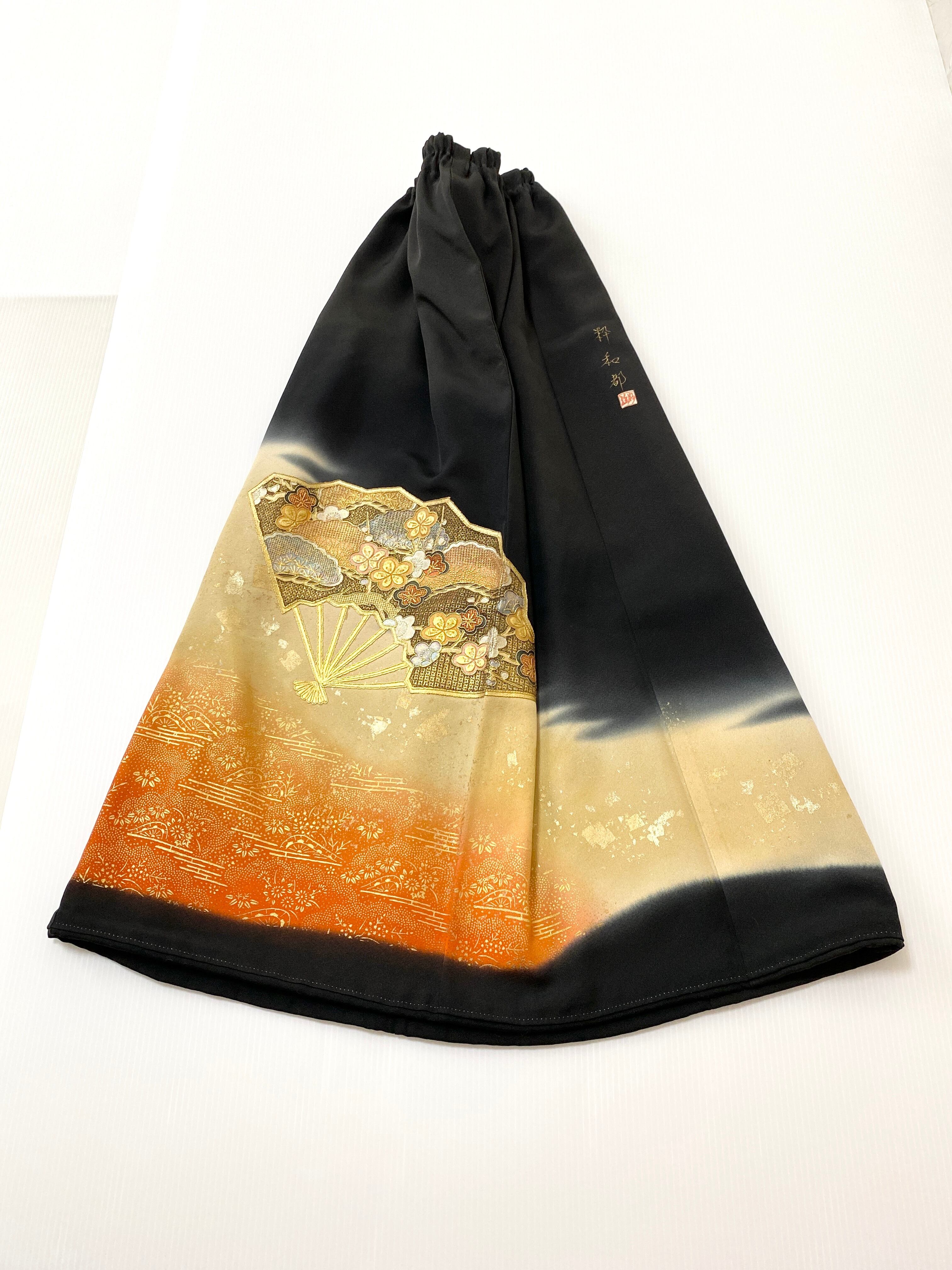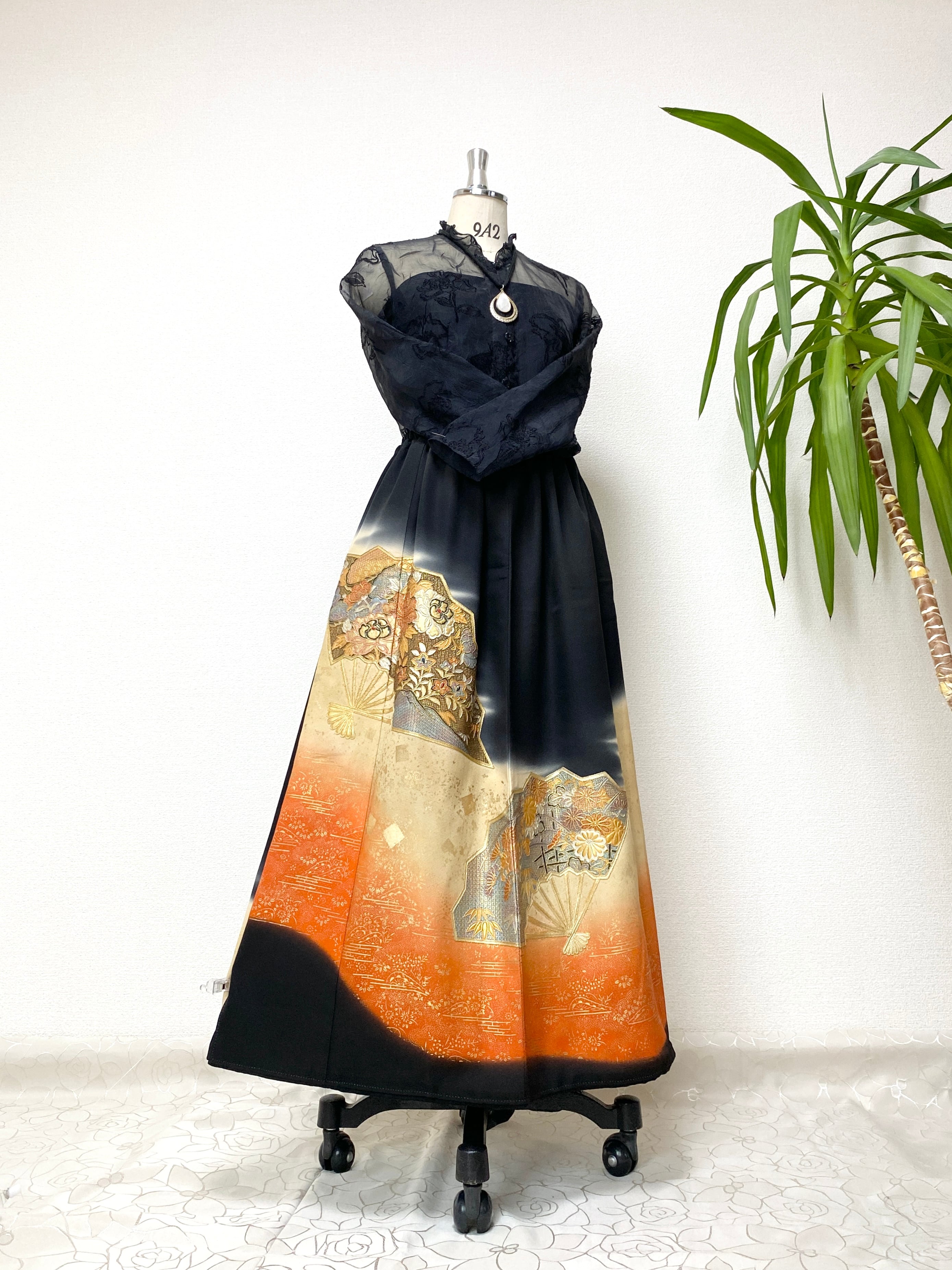 黒留袖着物リメイクウエストゴムロングスカートフリーサイズ