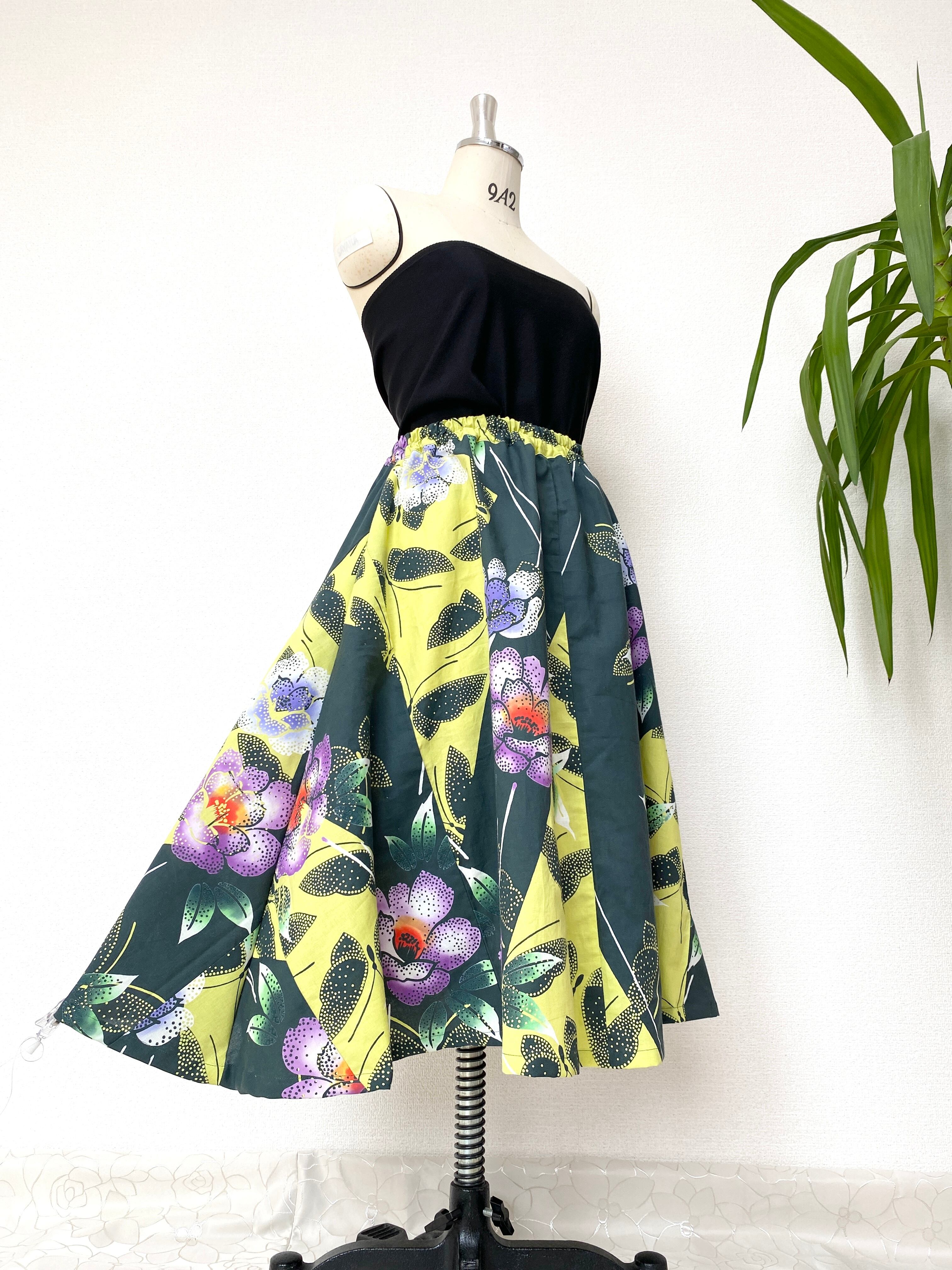 浴衣リメイクウエストゴムフレアースカートフリーサイズ&シュシュ