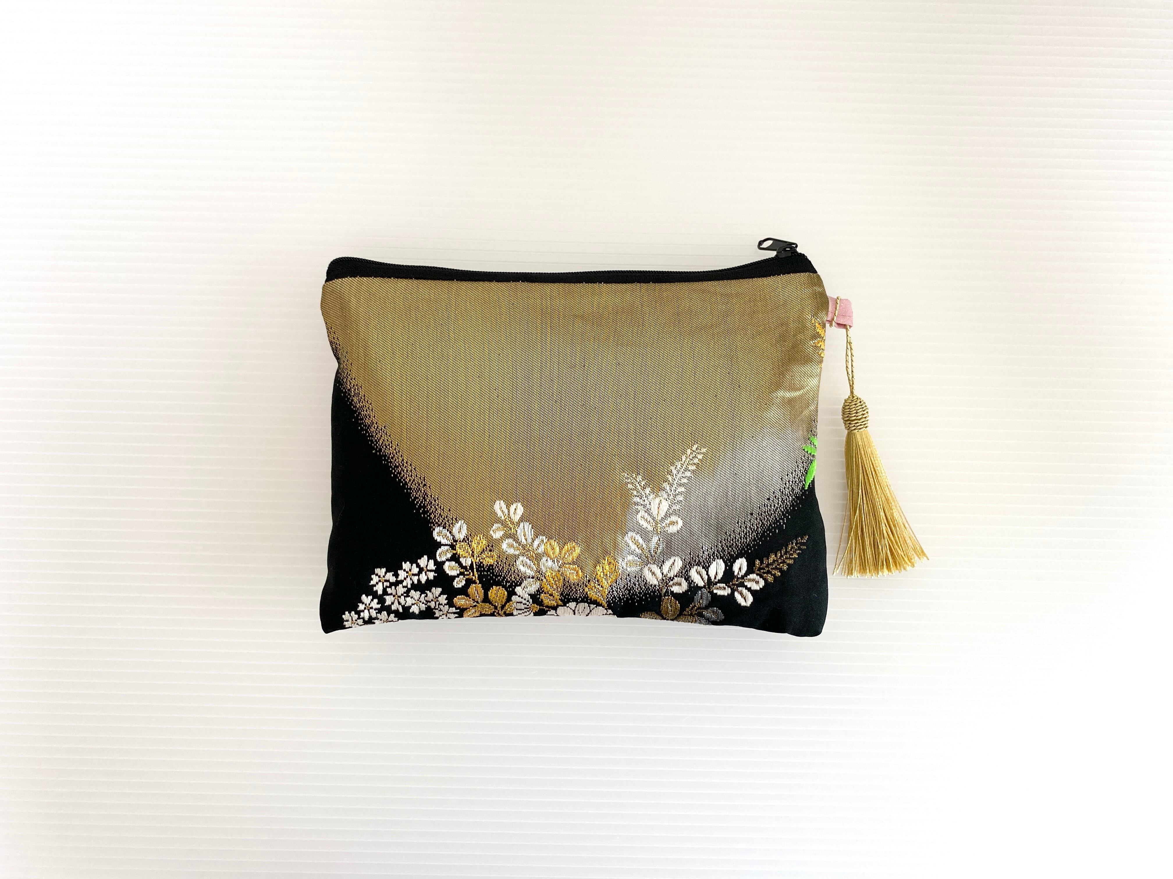 日本の古帯をリメイクして作製したポーチでハンドメイド品です。