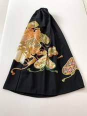 黒留袖着物をリメイクして作製したウエストゴムロングドレススカートフリーサイズ【超ロング丈】です。