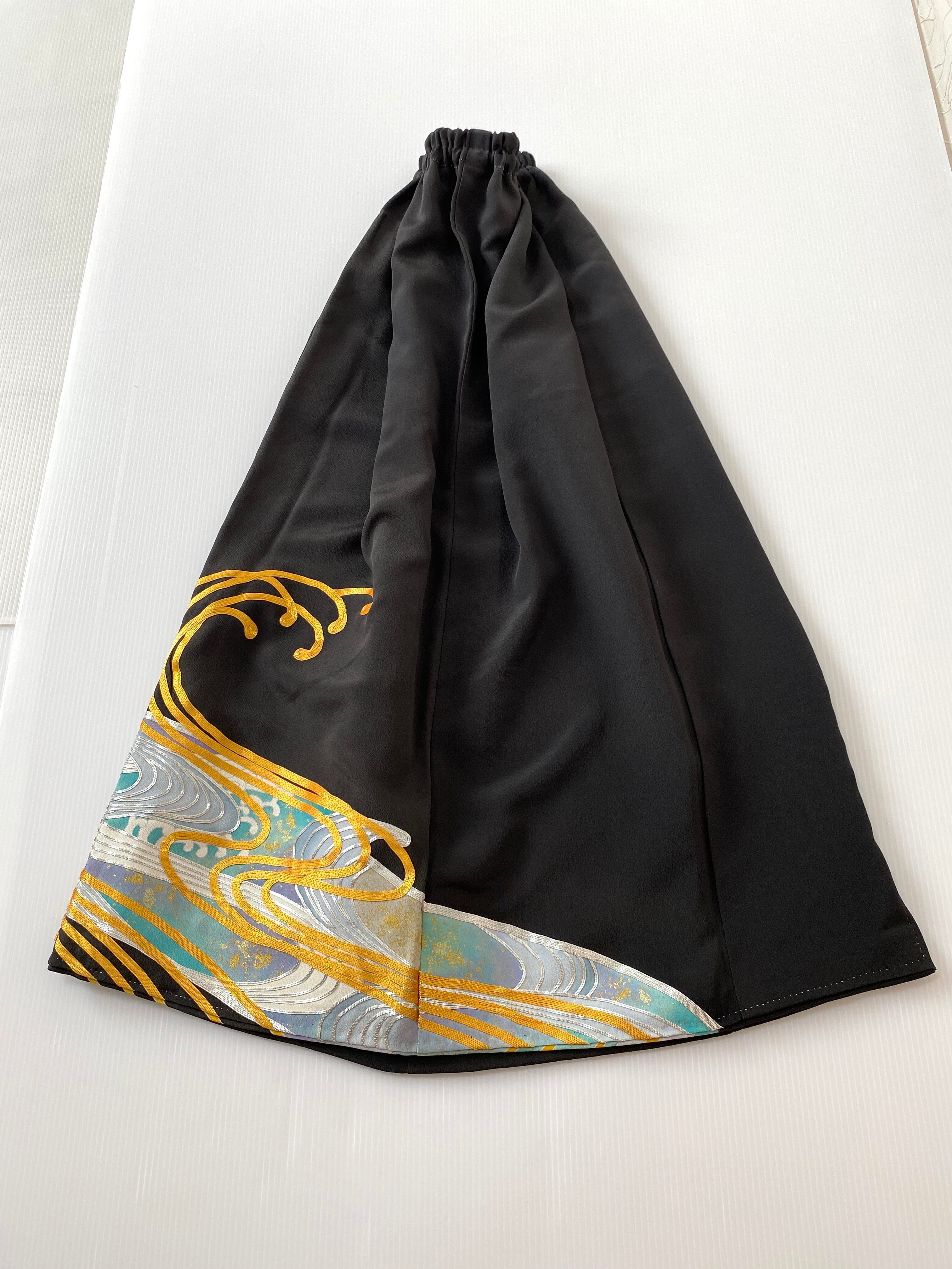 黒留袖着物をリメイクして作製したウエストゴムロングドレススカートフリーサイズです。