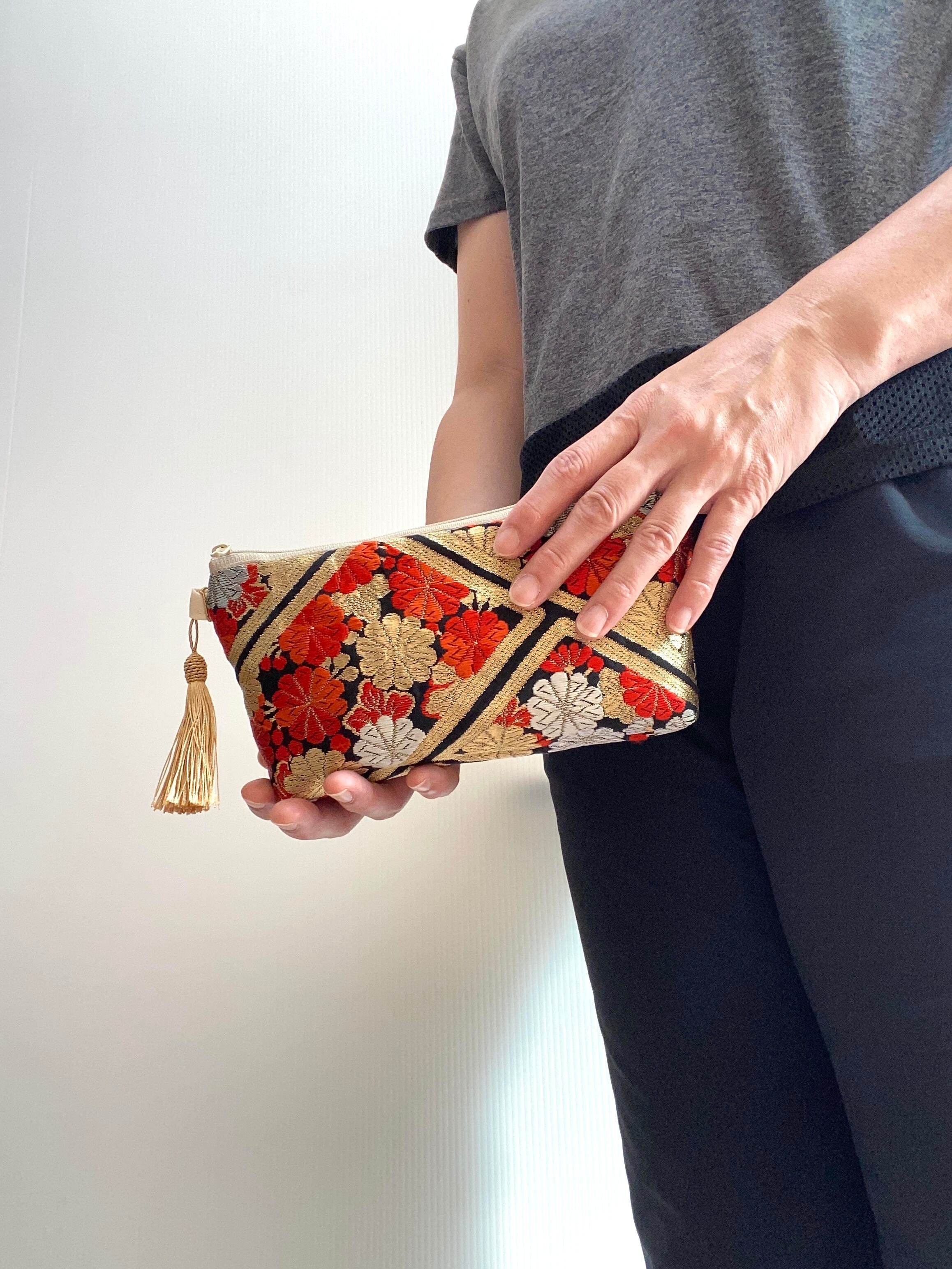 大人可愛いポーチ帯リメイクポーチ化粧ポーチ パスポート入れ 通帳入れ お薬手帳入れマルチポーチマルチケース コスメポーチ