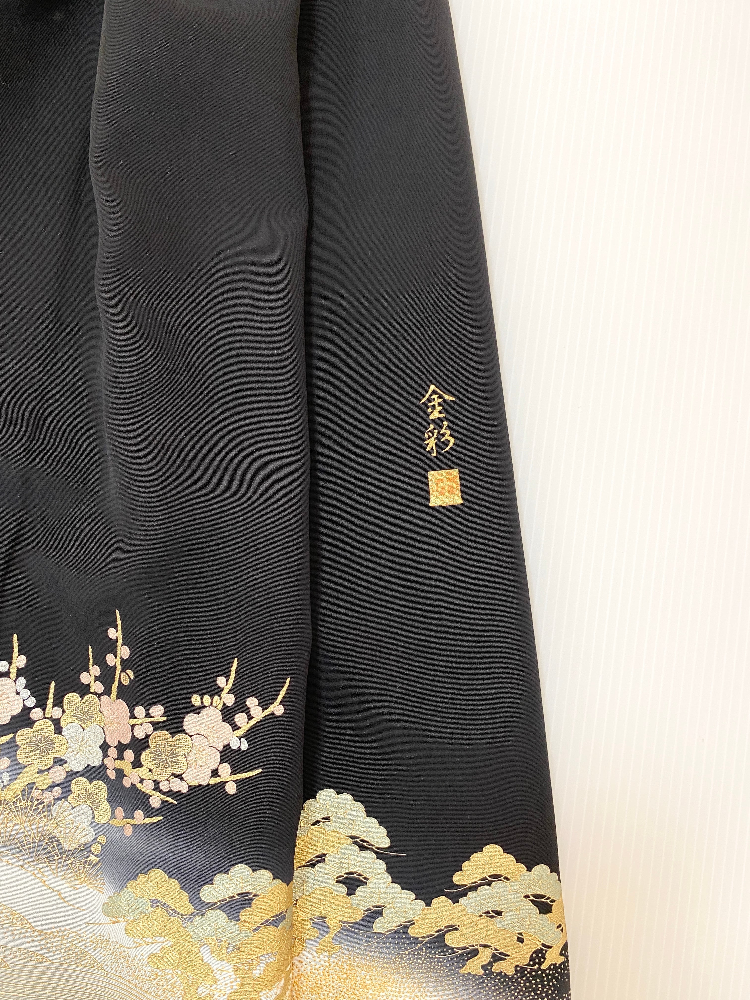 黒留袖着物をリメイクして作製したウエストゴムロングドレススカートフリーサイズです。