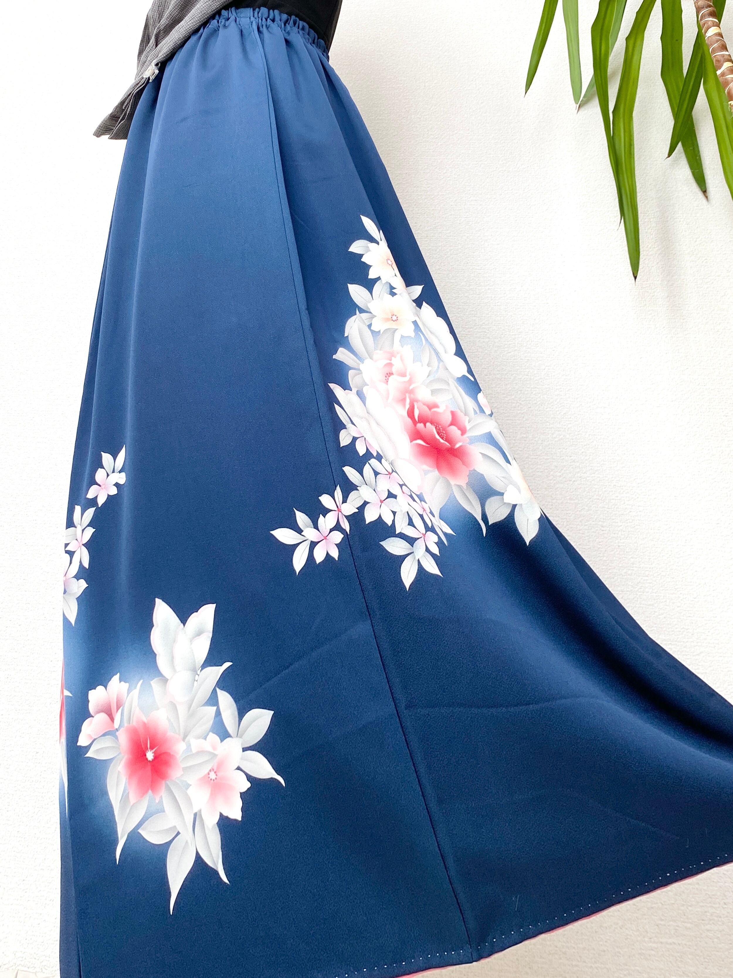 大人可愛い着物スカートフリーサイズ大人可愛い着物リメイクウエストゴムロングスカートフリーサイズ