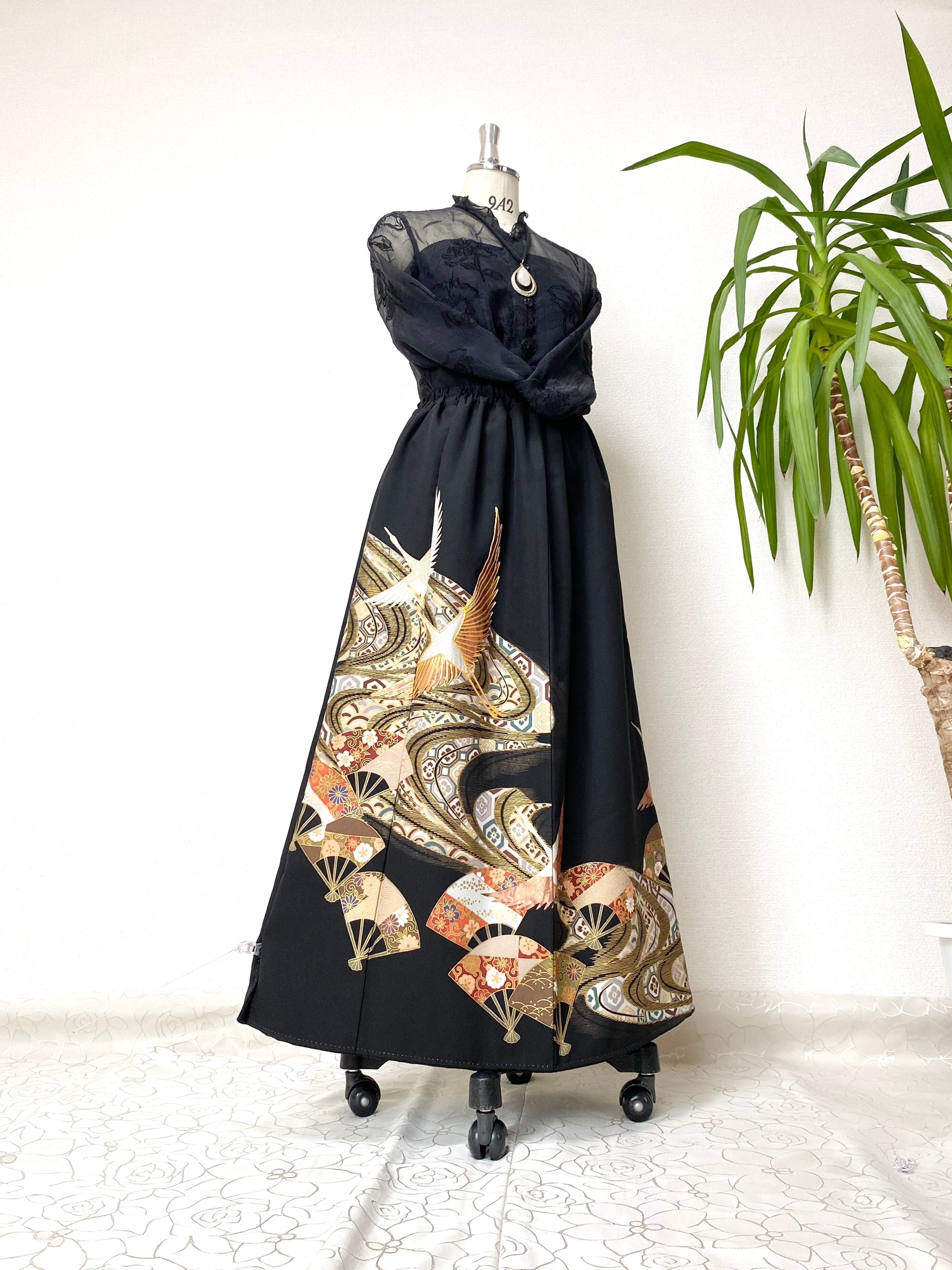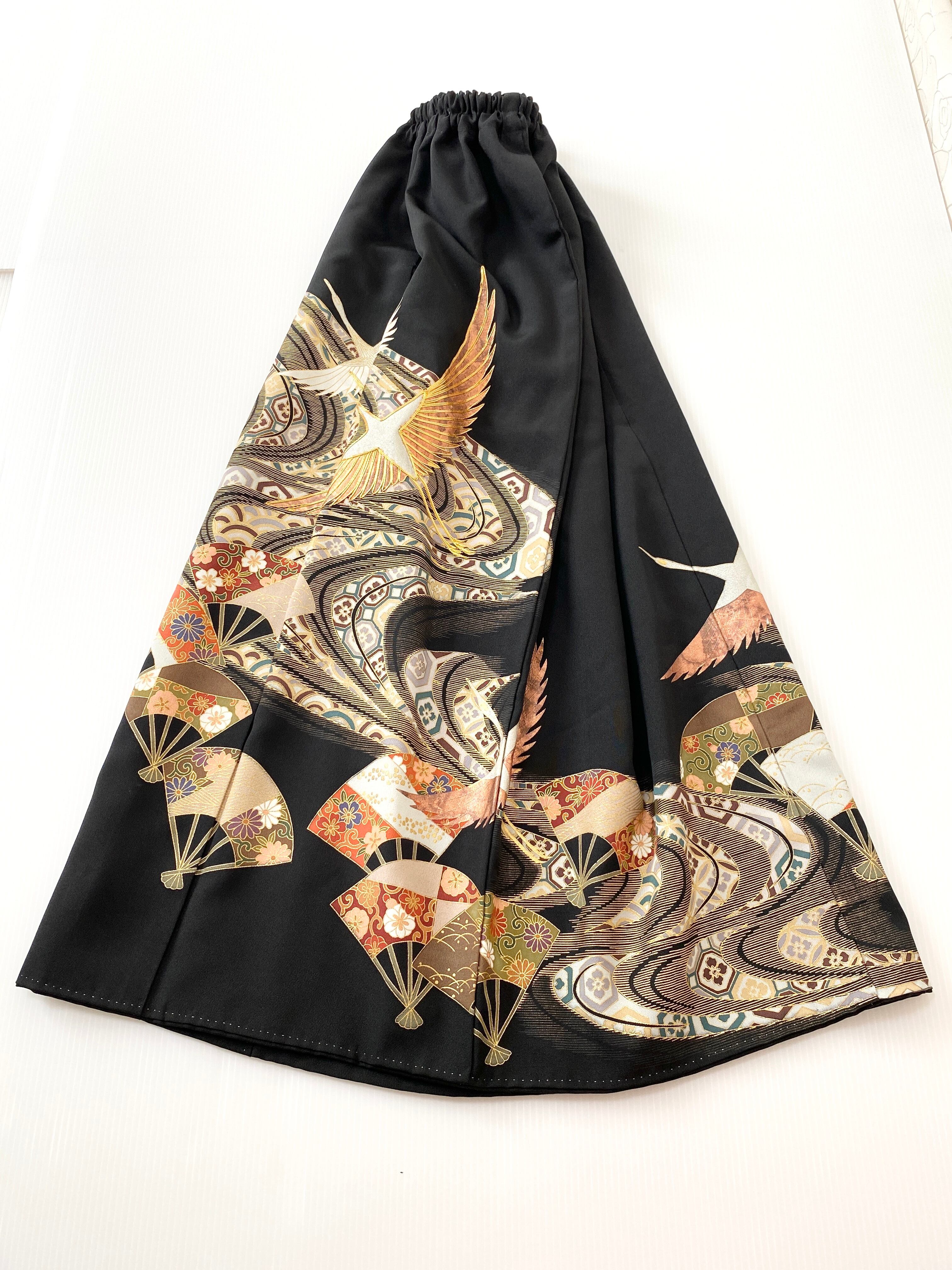 セレブ着物スカートフリーサイズ黒留袖着物リメイクウエストゴムロングスカート大人可愛いセレブスカート