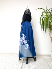 着物をリメイクして作製したウエストゴムロングドレススカートフリーサイズです。