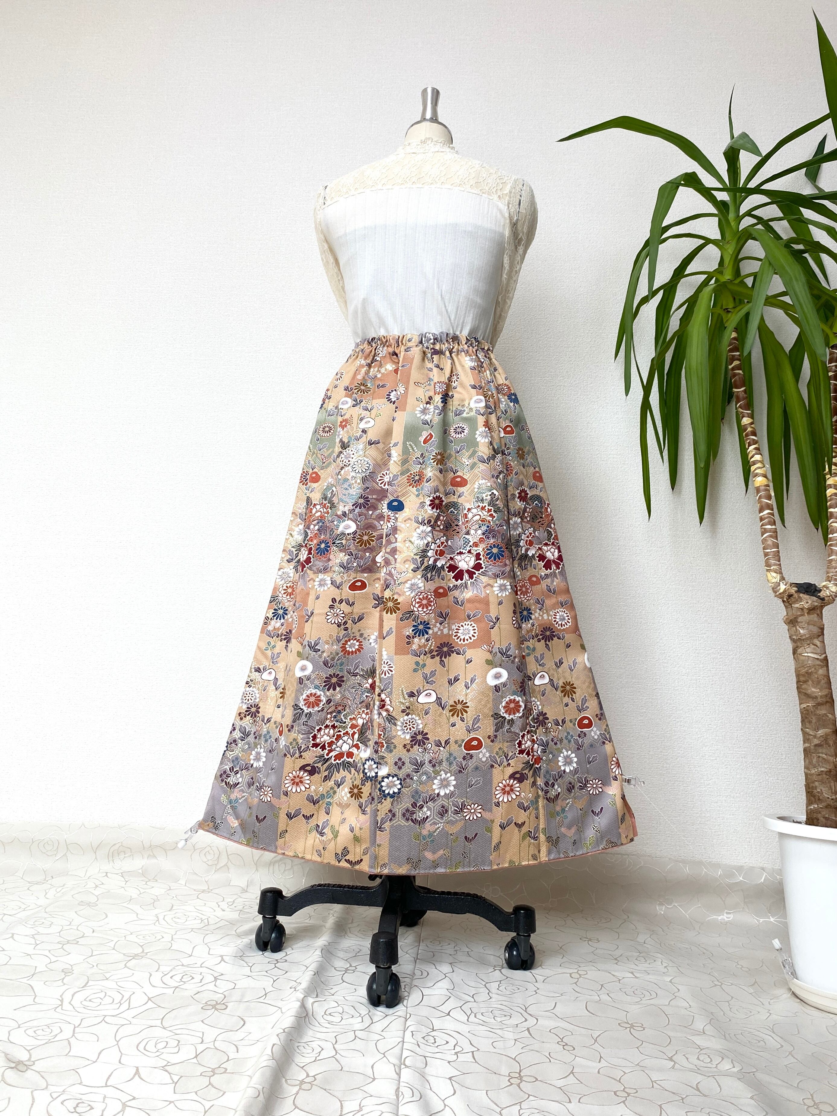 大人可愛い着物スカートフリーサイズ着物リメイクウエストゴムロングスカートフリーサイズ送料込みハンドメイド大人可愛いスカートNO.2215