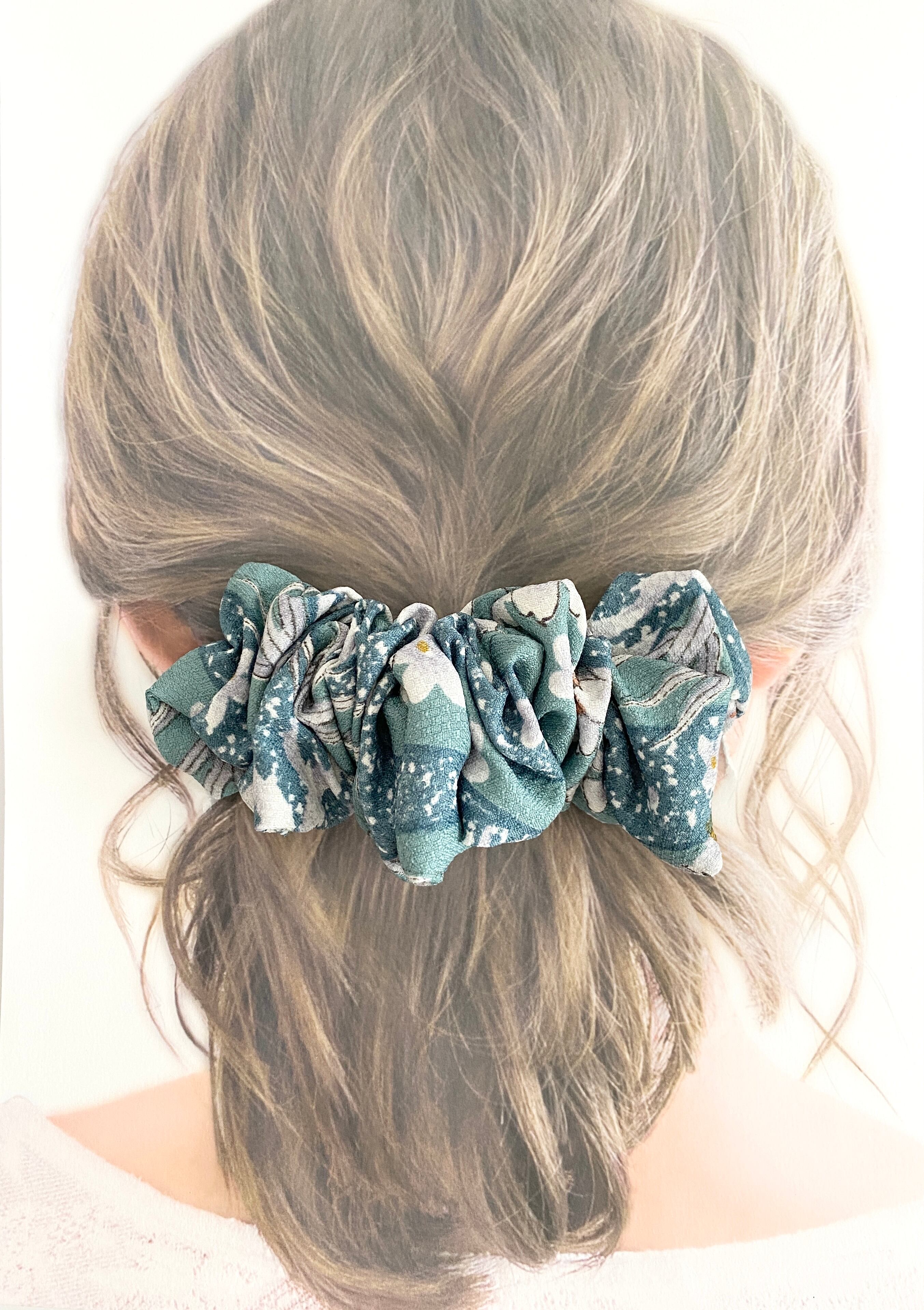 着物布生地なので柔らかで薄い布生地な為触り心地が良く滑らかで髪結びの装着がとても良いシュシュヘアゴムです。