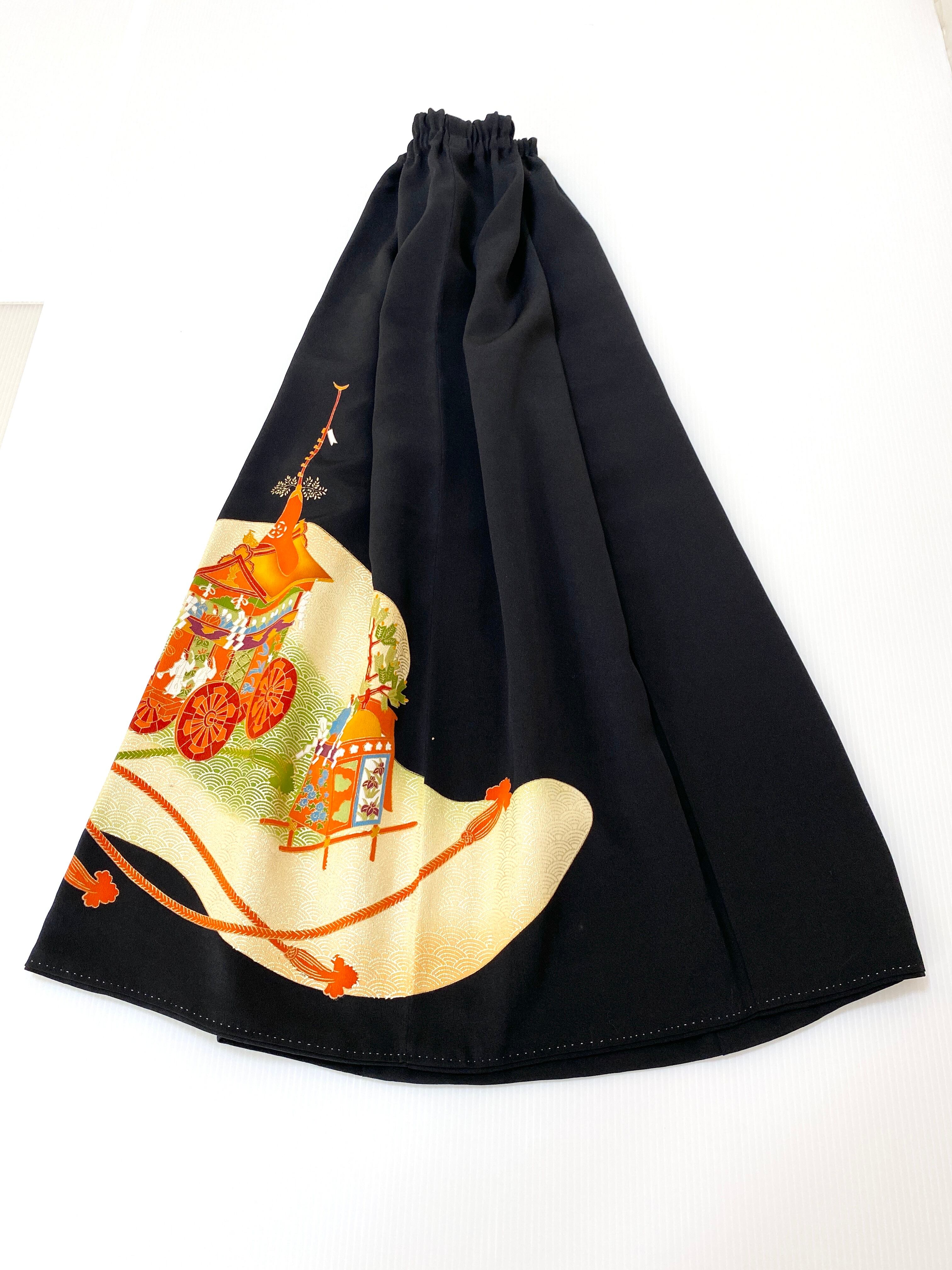 大人可愛いセレブ着物スカートフリーサイズ1点物黒留袖着物リメイクウエストゴムロングスカート