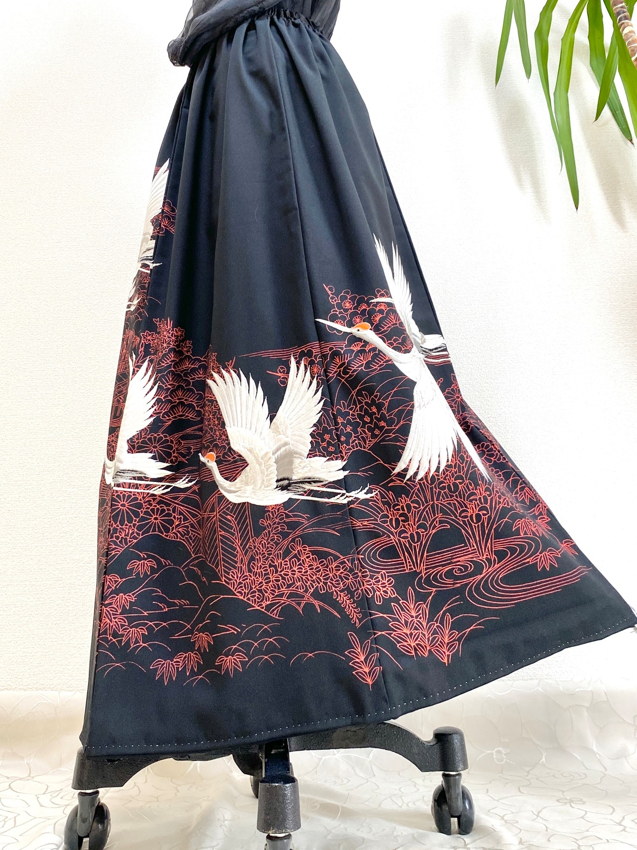 大人可愛いセレブ着物スカートフリーサイズ1点物黒留袖着物リメイクウエストゴムロングスカート