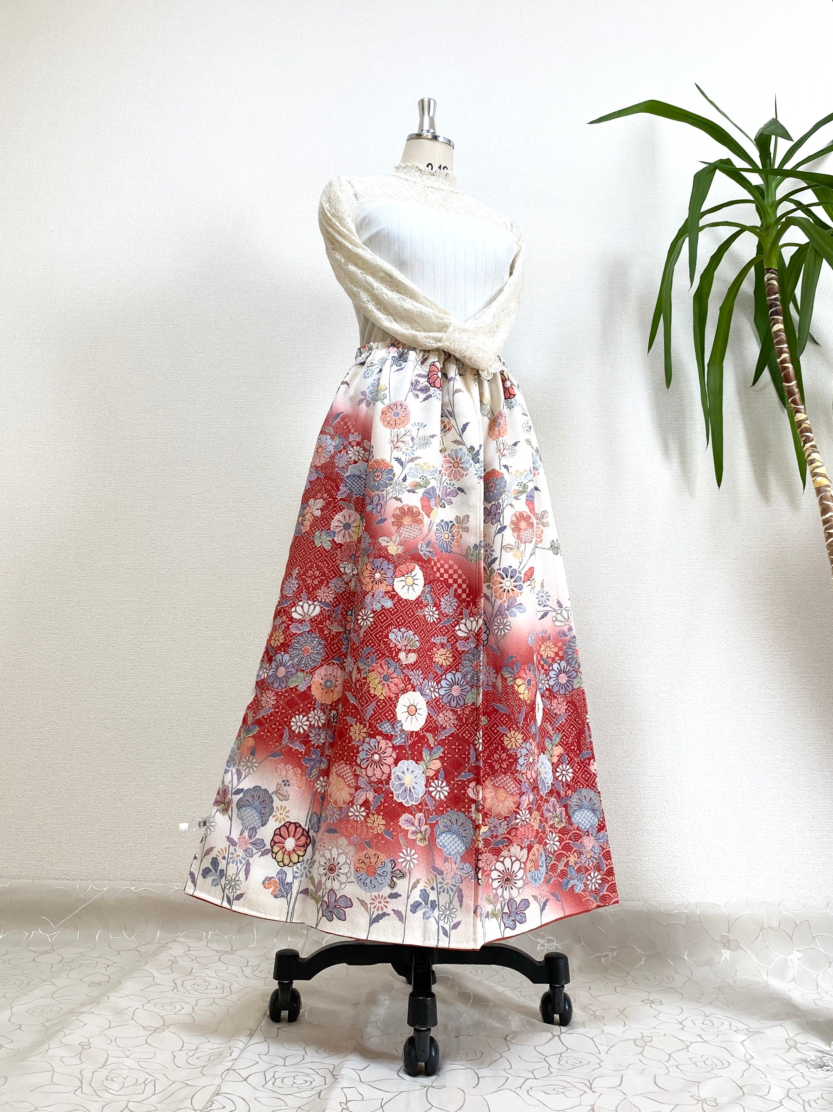 大人可愛いセレブ着物スカートフリーサイズ1点物着物リメイクウエストゴムロングスカートフリーサイズ送料込みハンドメイドNO.2256