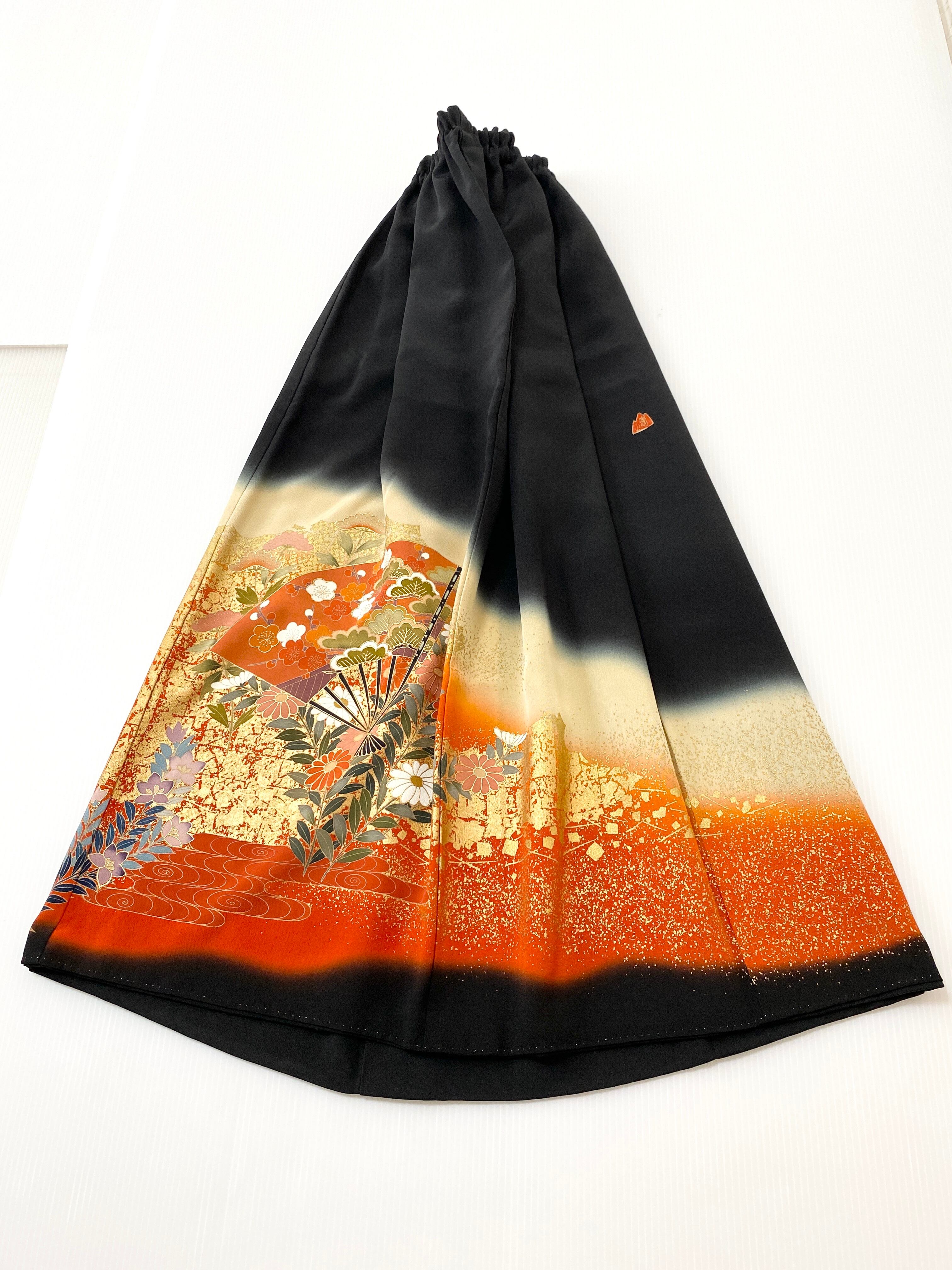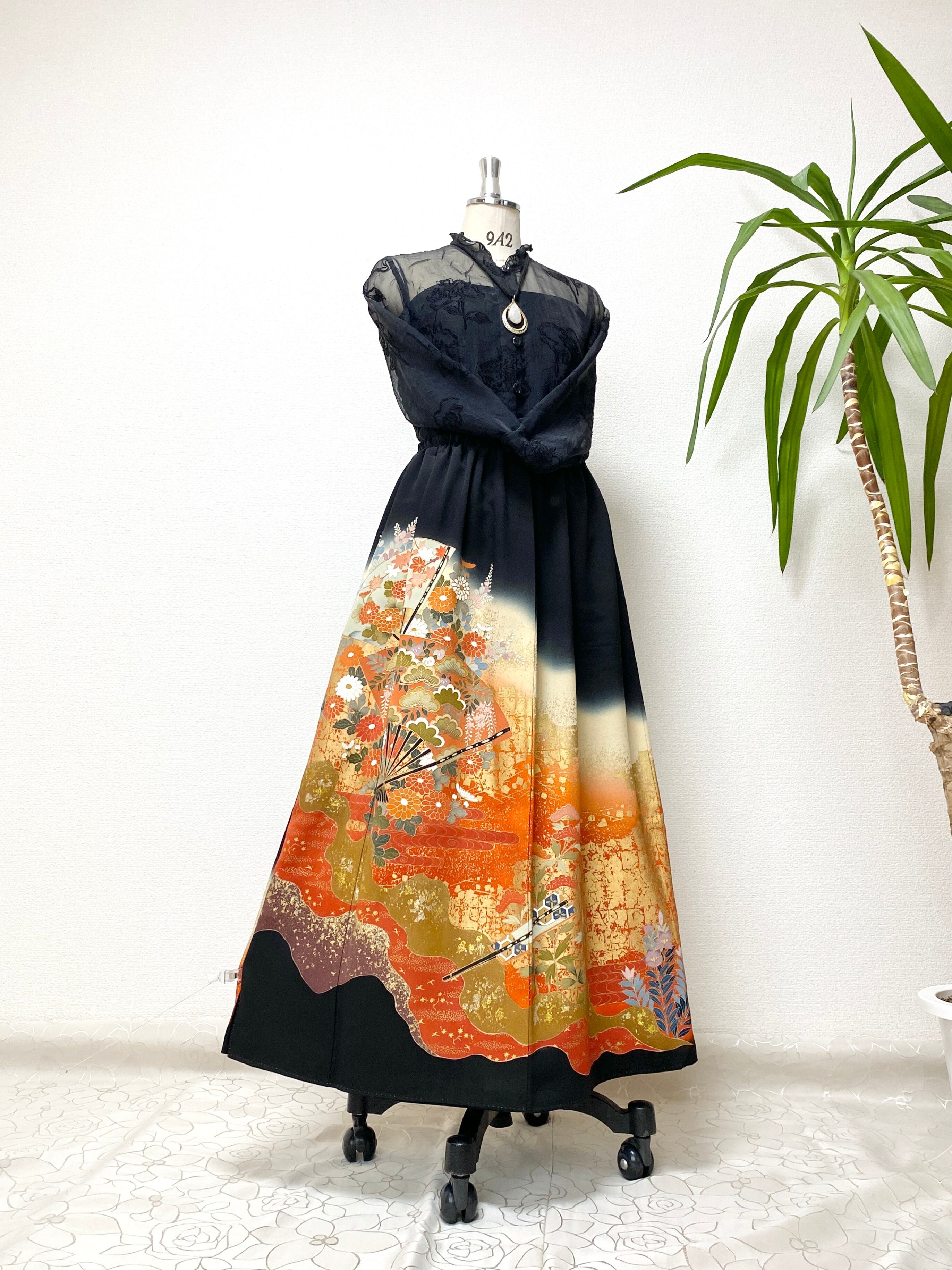 大人可愛いセレブ着物スカートフリーサイズ1点物黒留袖着物リメイクウエストゴムロングスカート