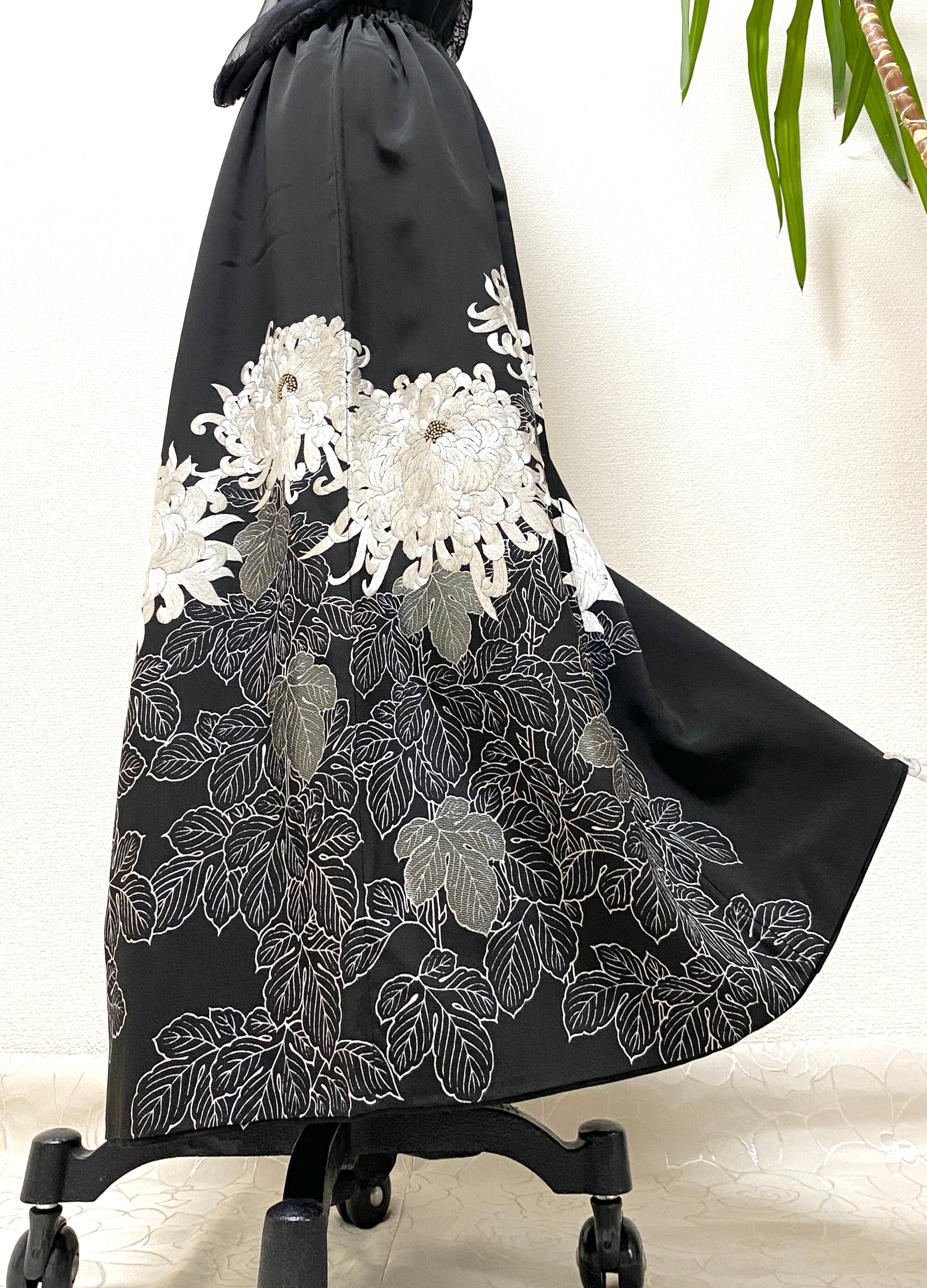 大人可愛いセレブ着物スカートフリーサイズ1点物黒留袖着物リメイクウエストゴムロングスカート