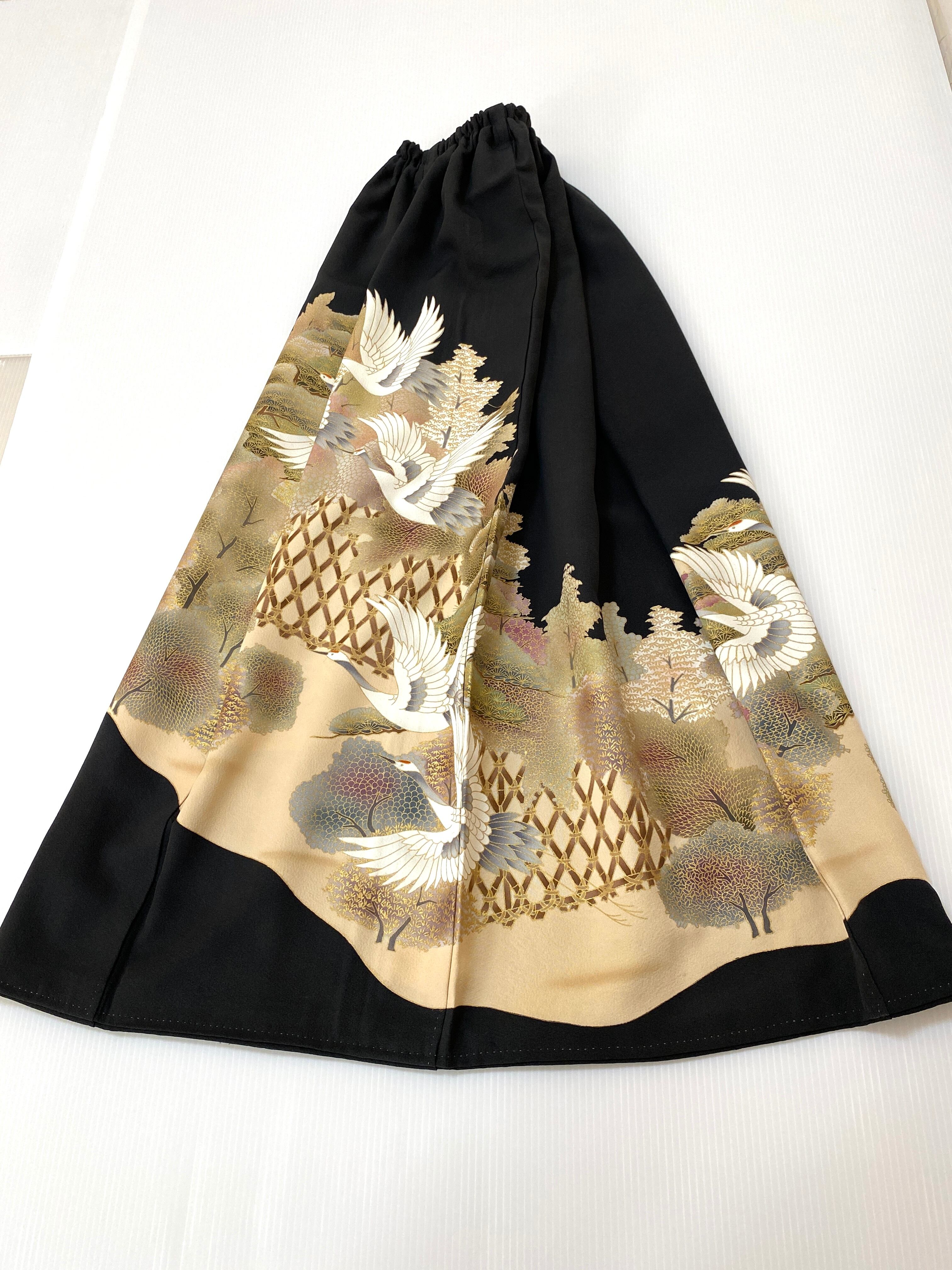 大人可愛いセレブ着物スカートフリーサイズ1点物黒留袖着物リメイクウエストゴムロングスカート