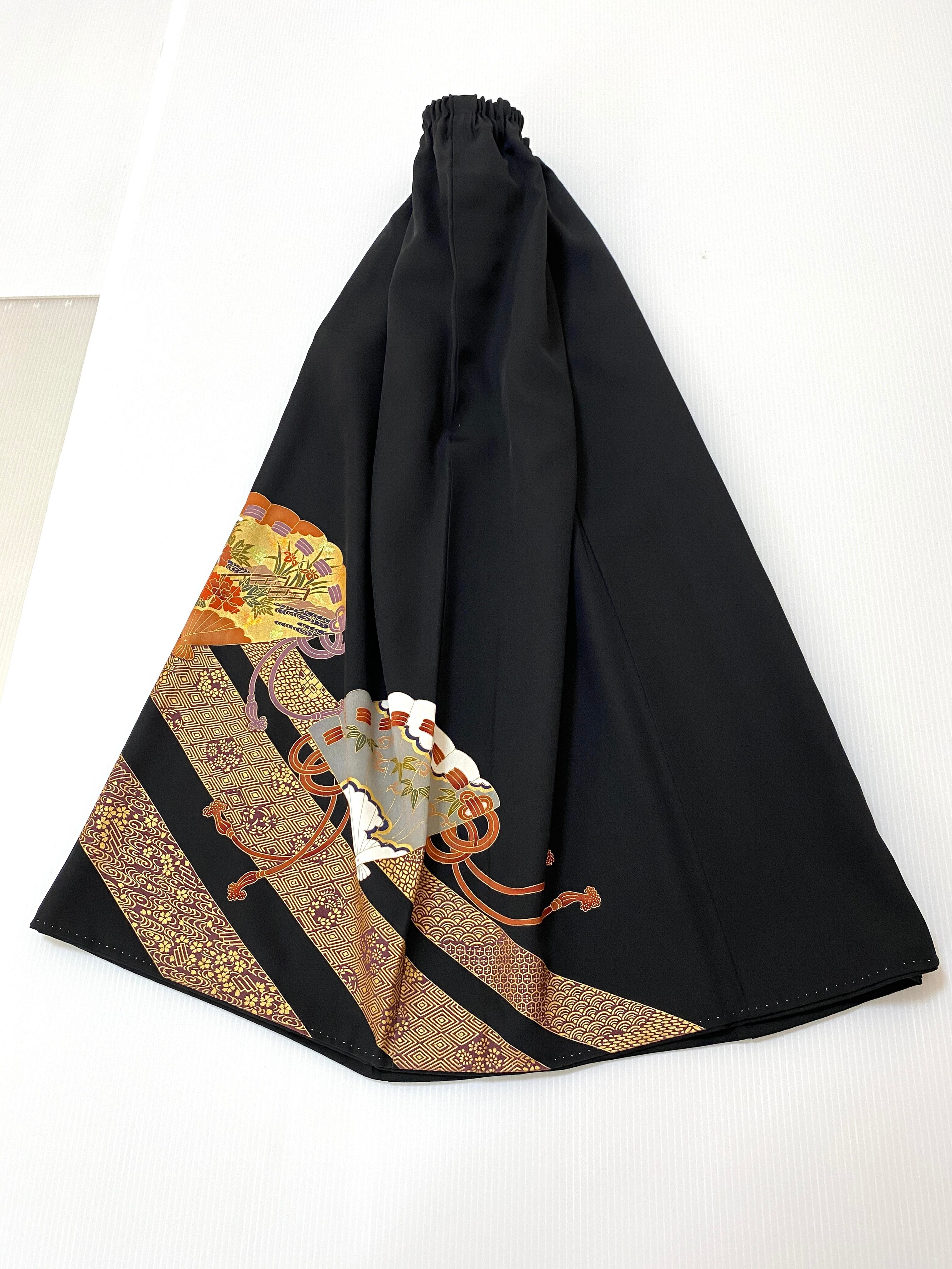 大人可愛いセレブ着物スカートフリーサイズ1点物黒留袖着物リメイクウエストゴムロングスカート