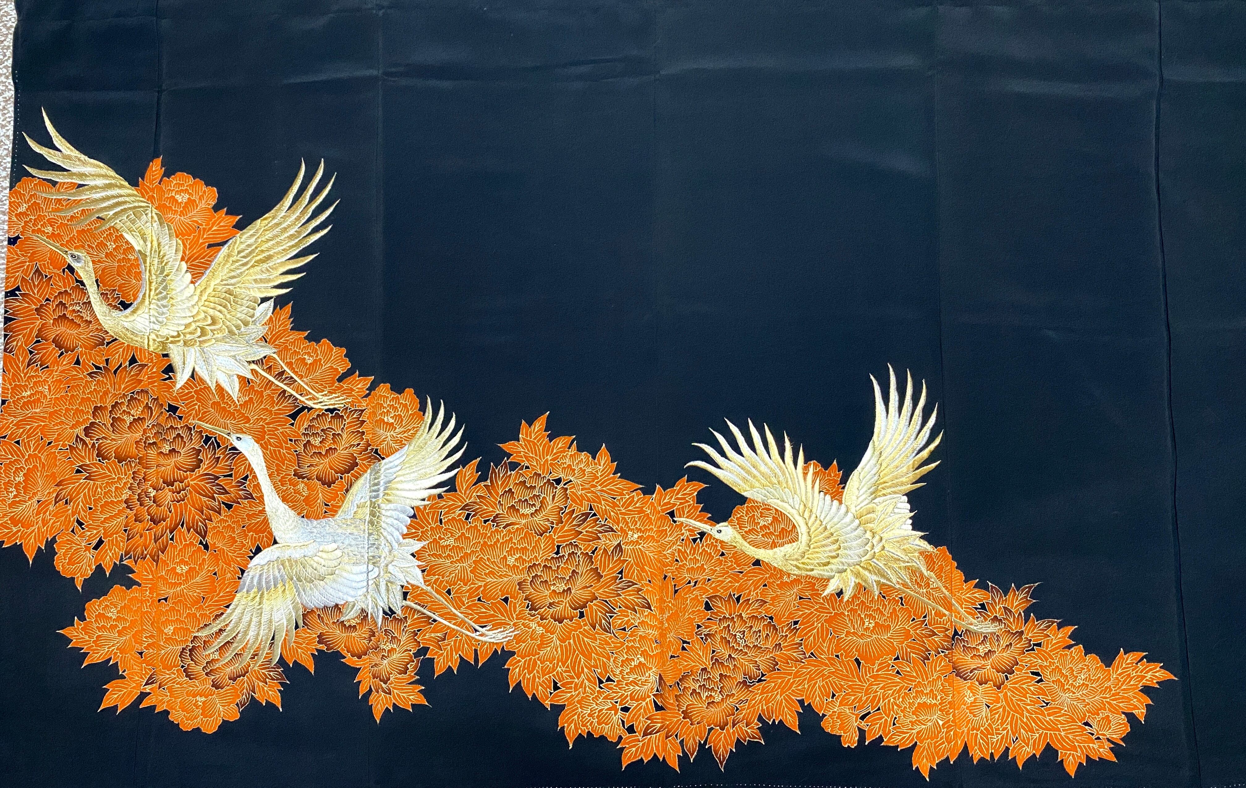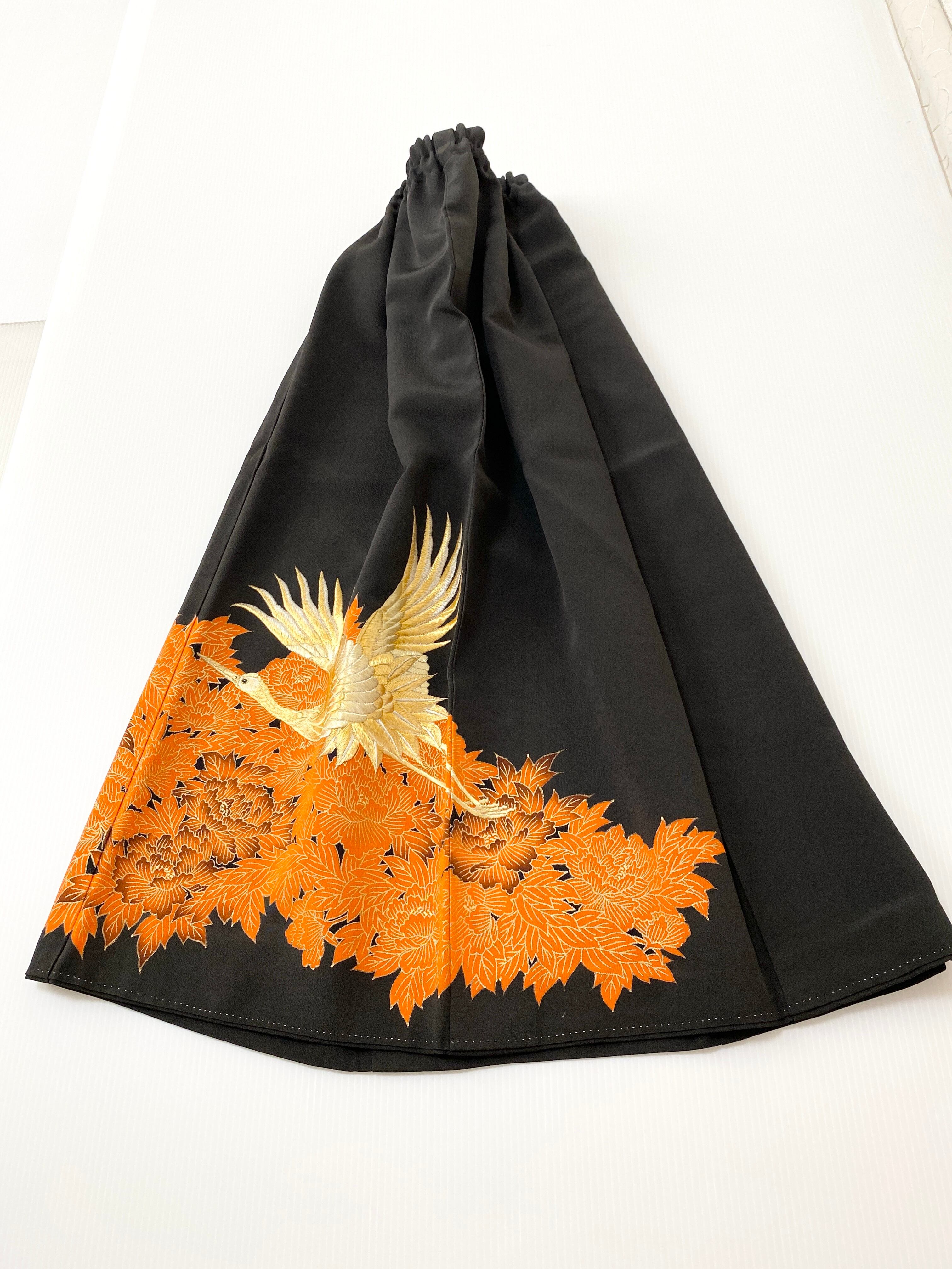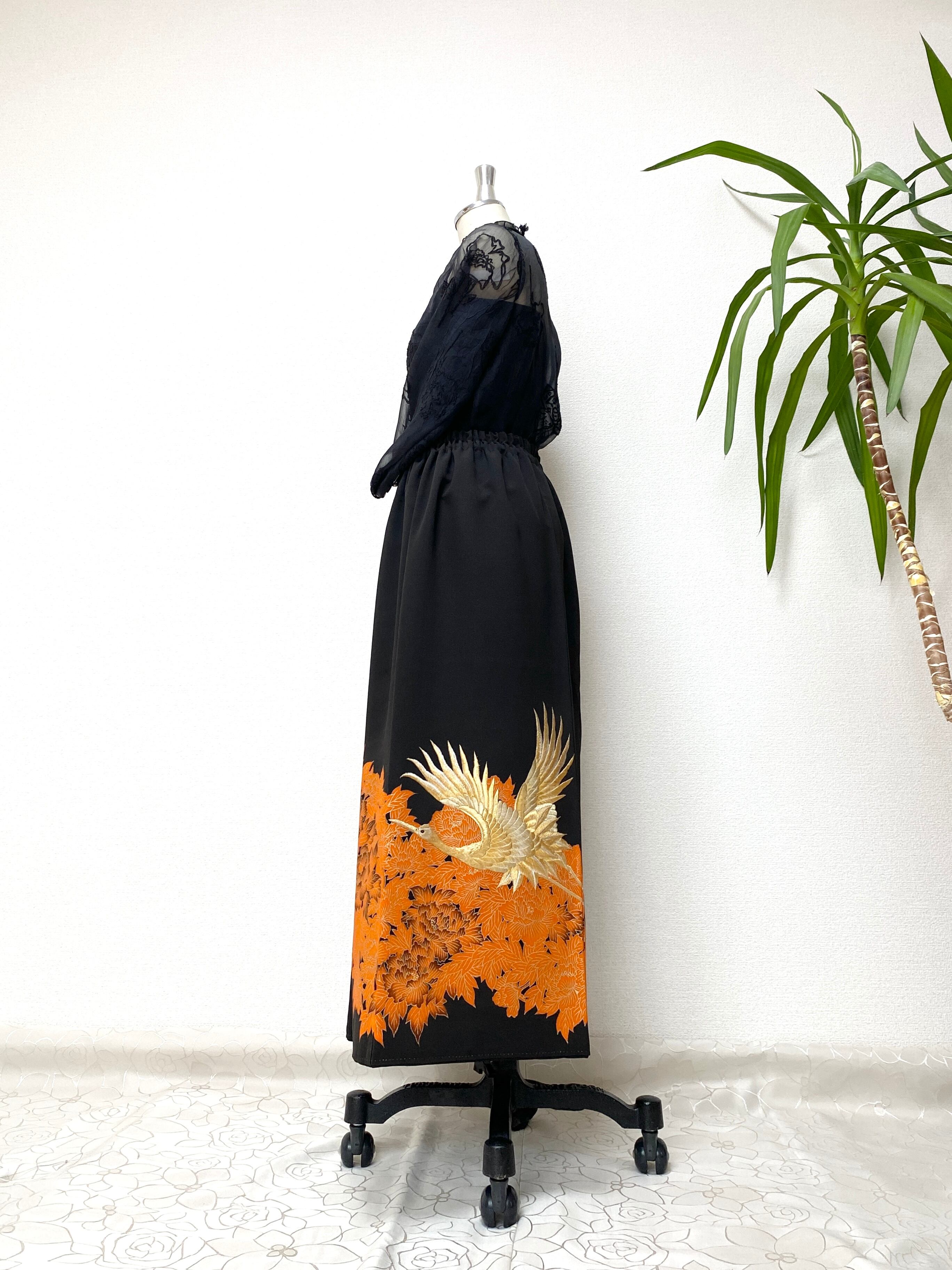 大人可愛いセレブ着物スカートフリーサイズ1点物黒留袖着物リメイクウエストゴムロングスカート