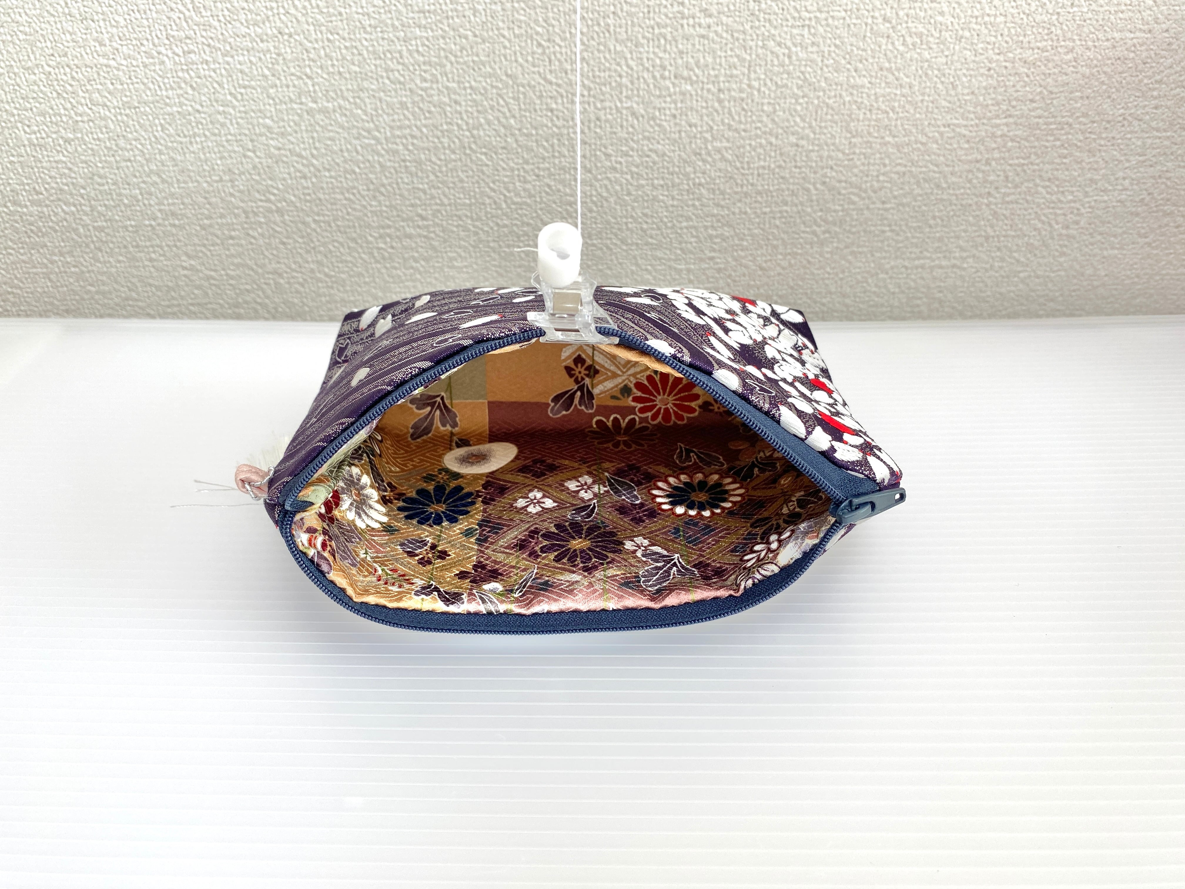 内側の裏生地にも着物布を使用しておりますのでしっかりとした造りの帯リメイクポーチです。