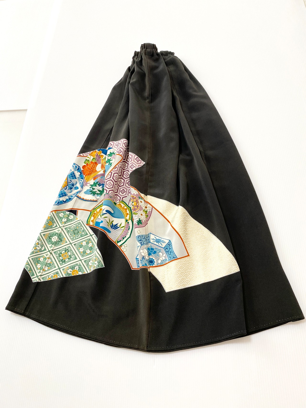 大人可愛いセレブ着物スカートフリーサイズ1点物黒留袖着物リメイクウエストゴムロングスカート