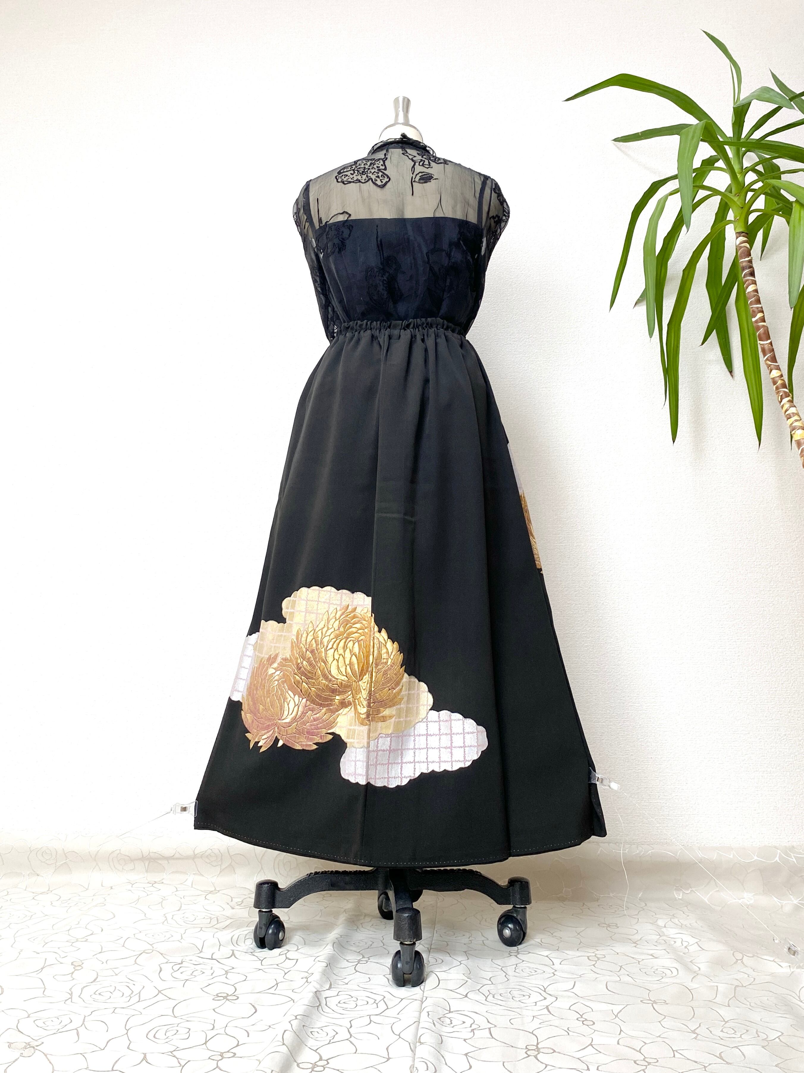 大人可愛いセレブ着物スカートフリーサイズ1点物黒留袖着物リメイクウエストゴムロングスカート