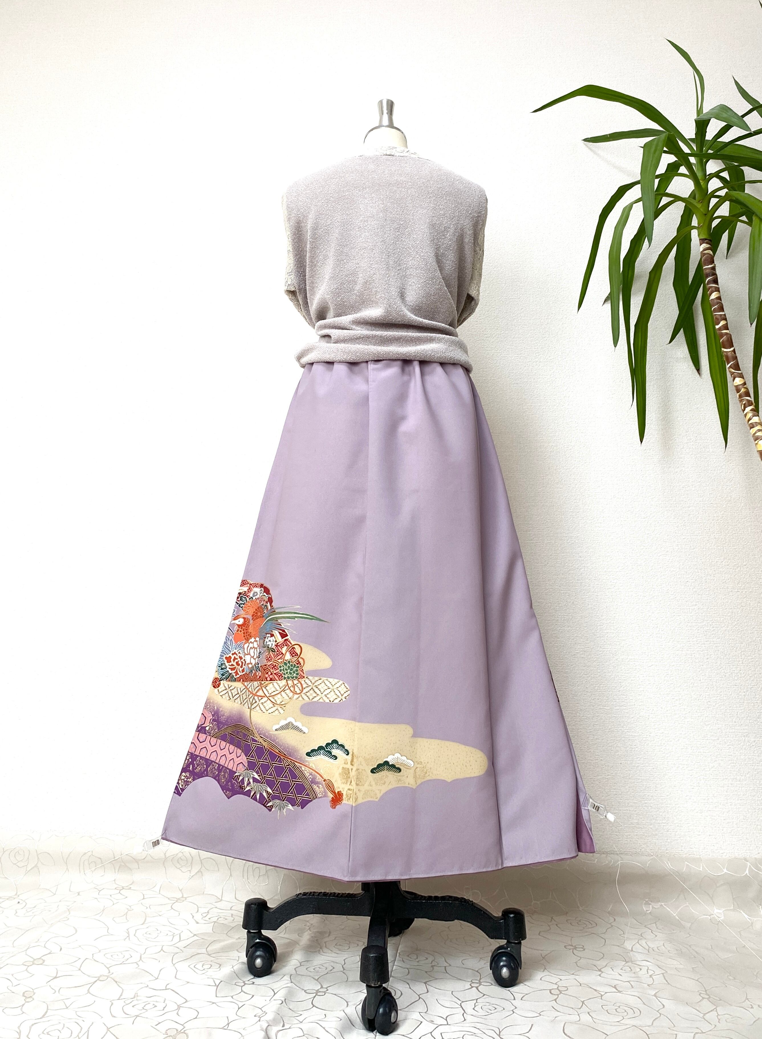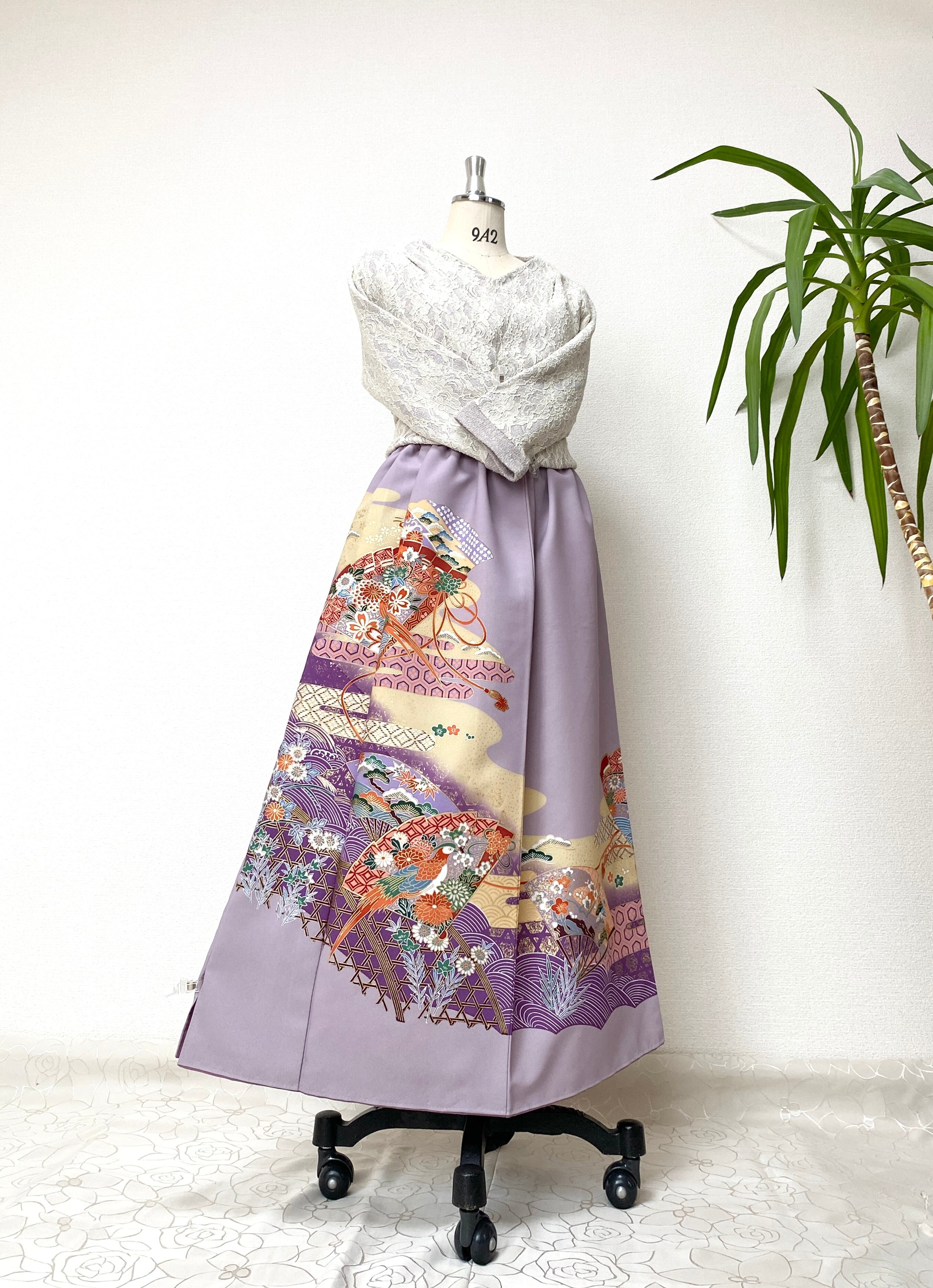 大人可愛いセレブ着物スカートフリーサイズ1点物着物リメイクウエストゴムロングスカートフリーサイズ送料込みハンドメイドNO.2386