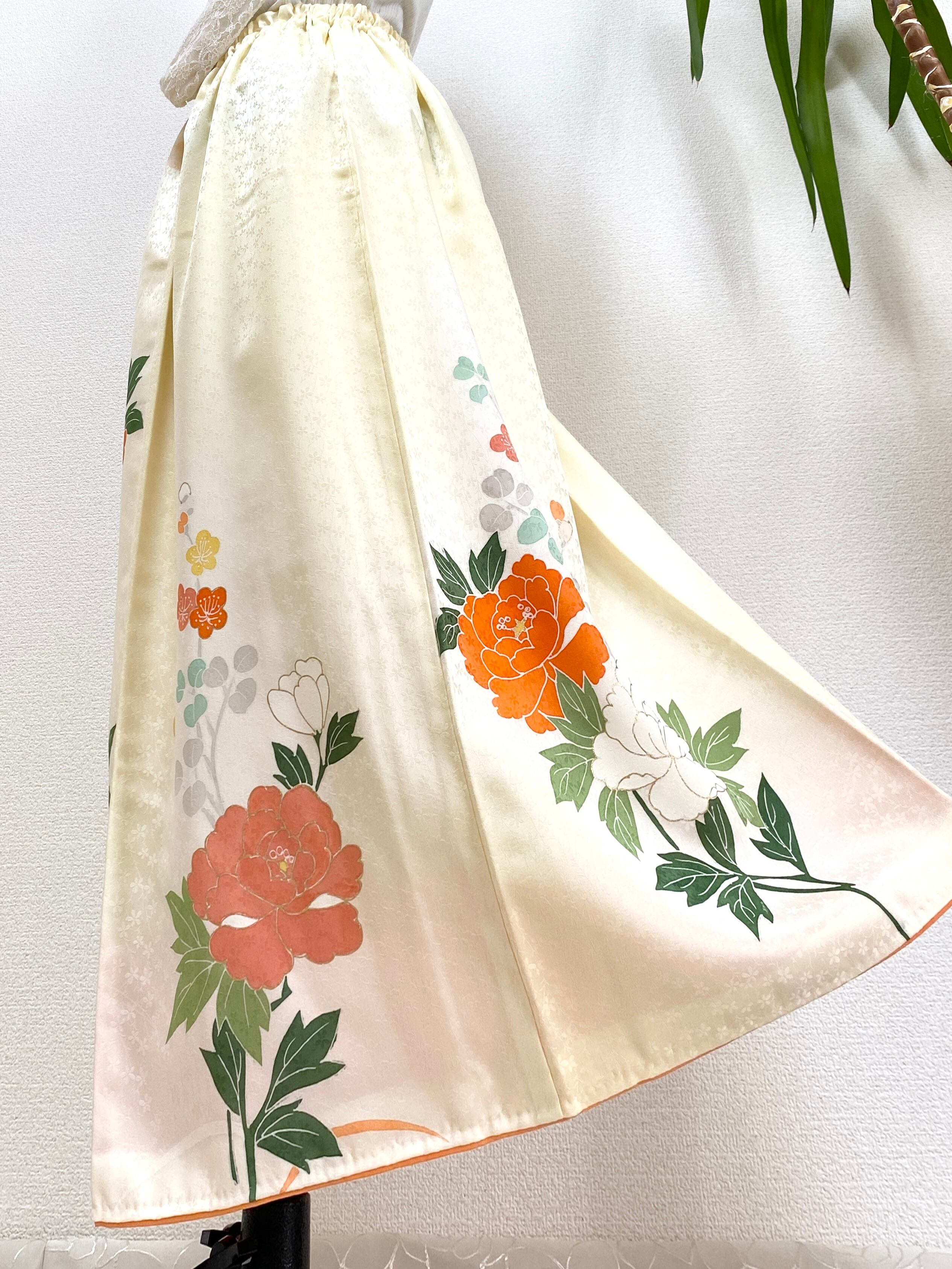 大人可愛いセレブ着物スカートフリーサイズ1点物着物リメイクウエストゴムロングスカートフリーサイズ送料込みハンドメイドNO.2512