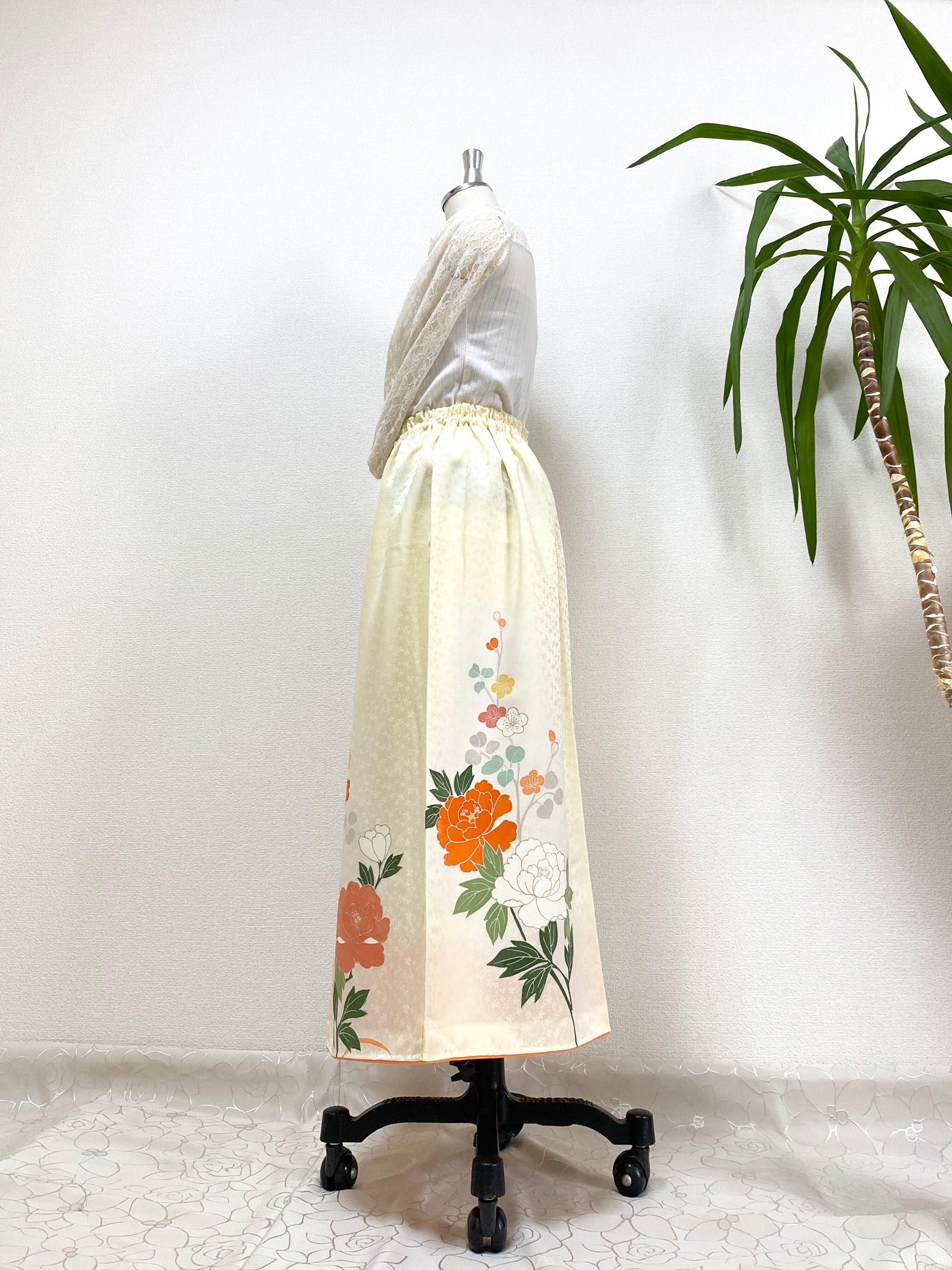 大人可愛いセレブ着物リメイクウエストゴムロングスカートフリーサイズ