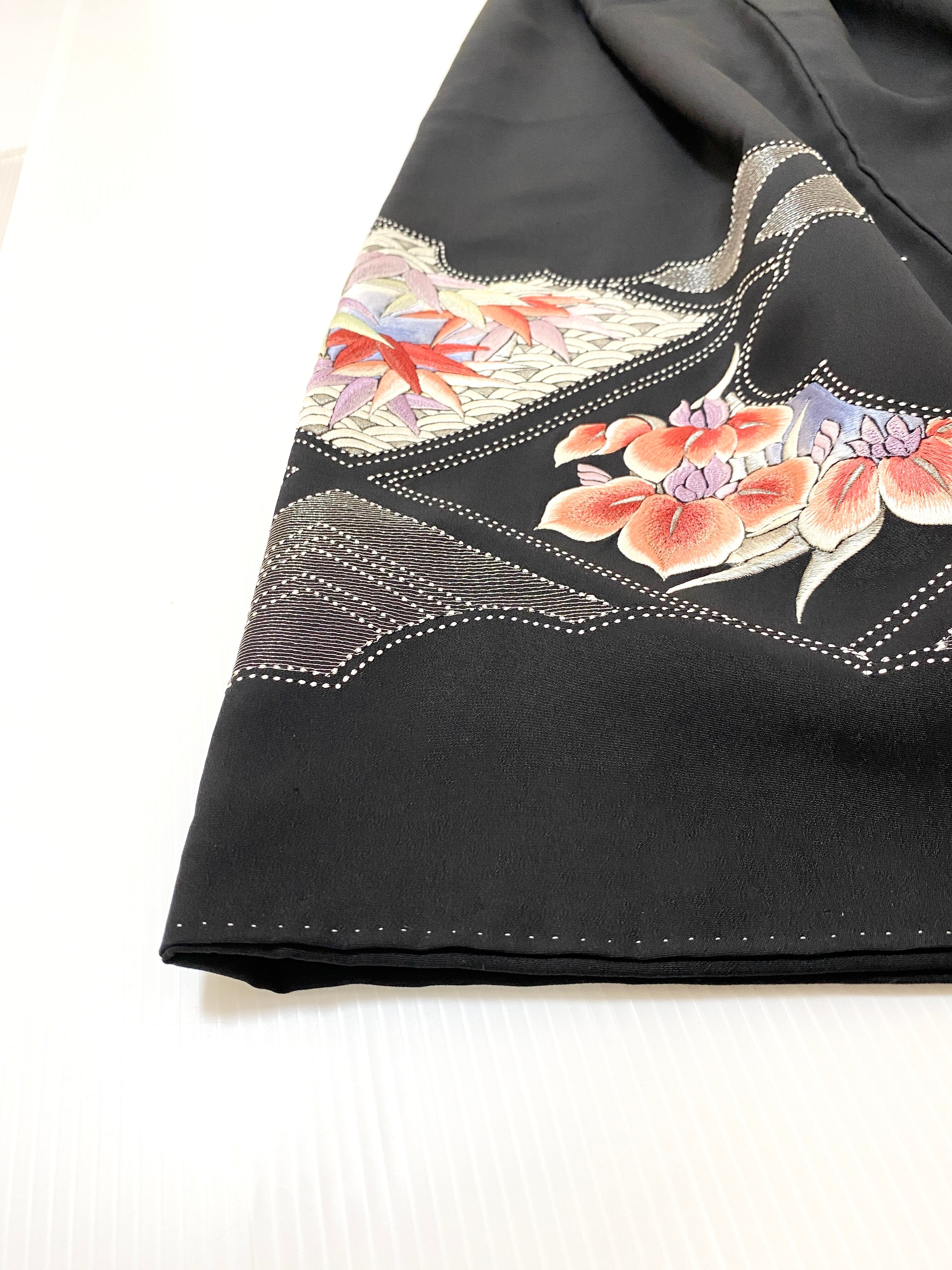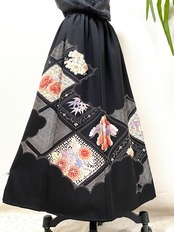 大人可愛いセレブ着物スカートフリーサイズ1点物黒留袖着物リメイクウエストゴムロングスカート
