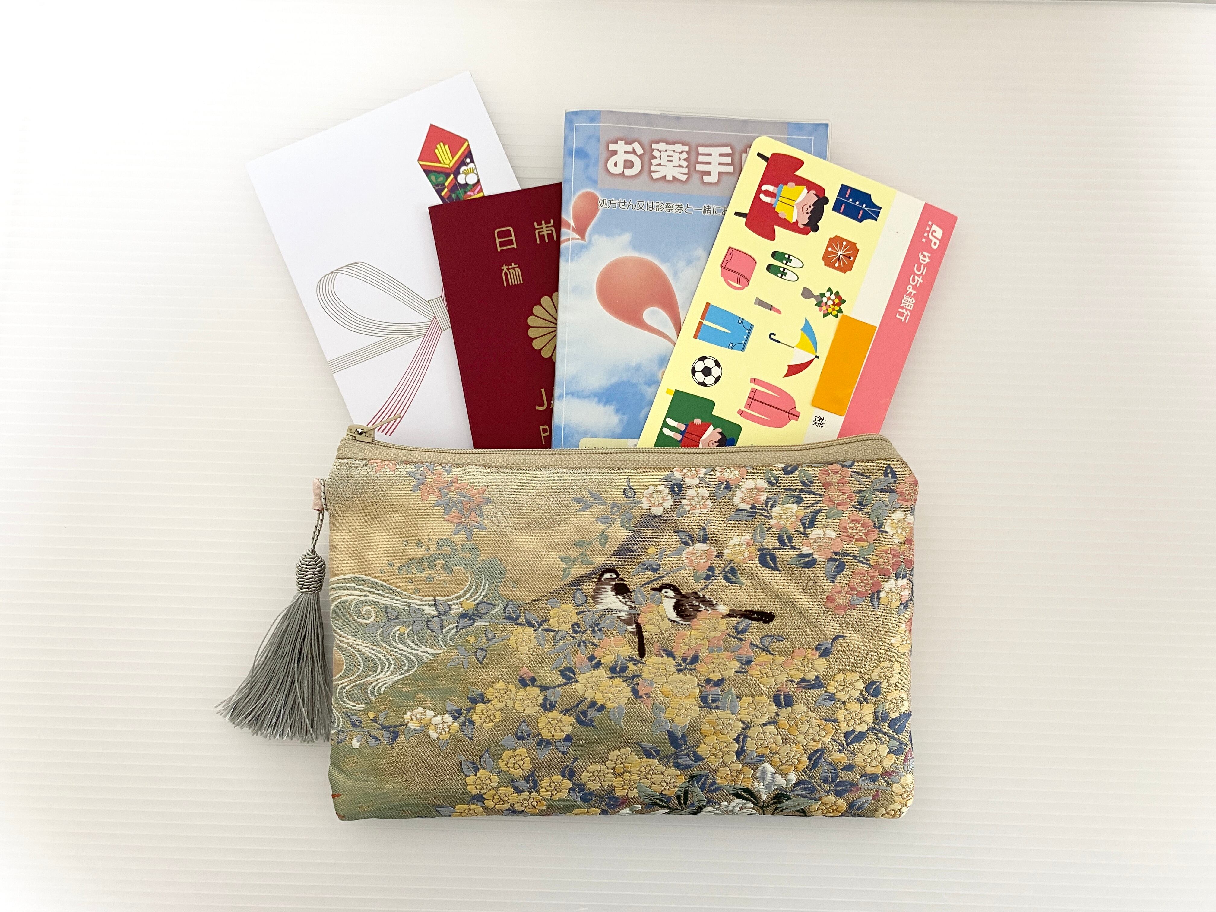 大人可愛いセレブポーチ帯リメイクポーチ化粧ポーチ【マチ無し】マルチポーチマルチケース帯リメイクポーチハンドメイド送料込みNO.2620