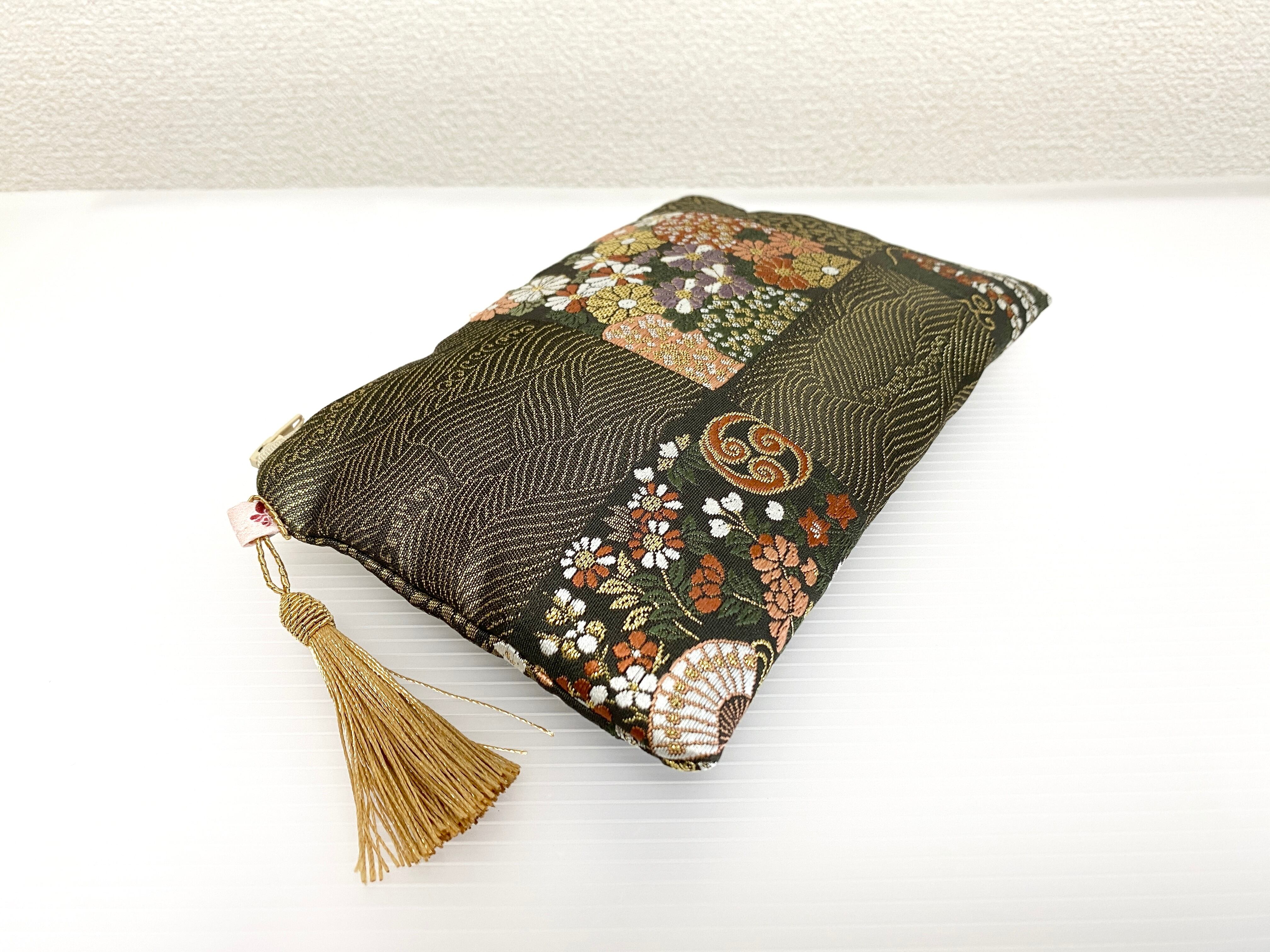 大人可愛いセレブポーチ帯リメイクポーチ化粧ポーチ【マチ無し】マルチポーチマルチケース帯リメイクポーチハンドメイド送料込みNO.2635