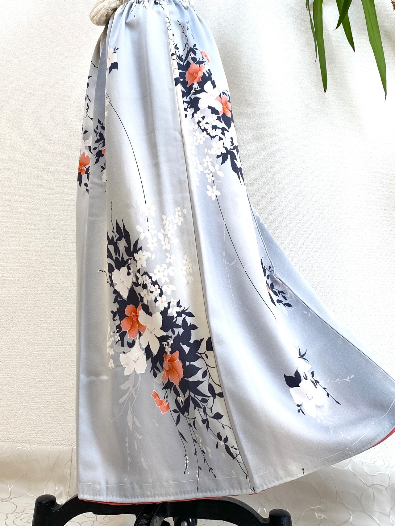 大人可愛いセレブ着物リメイクウエストゴムロングスカートフリーサイズ