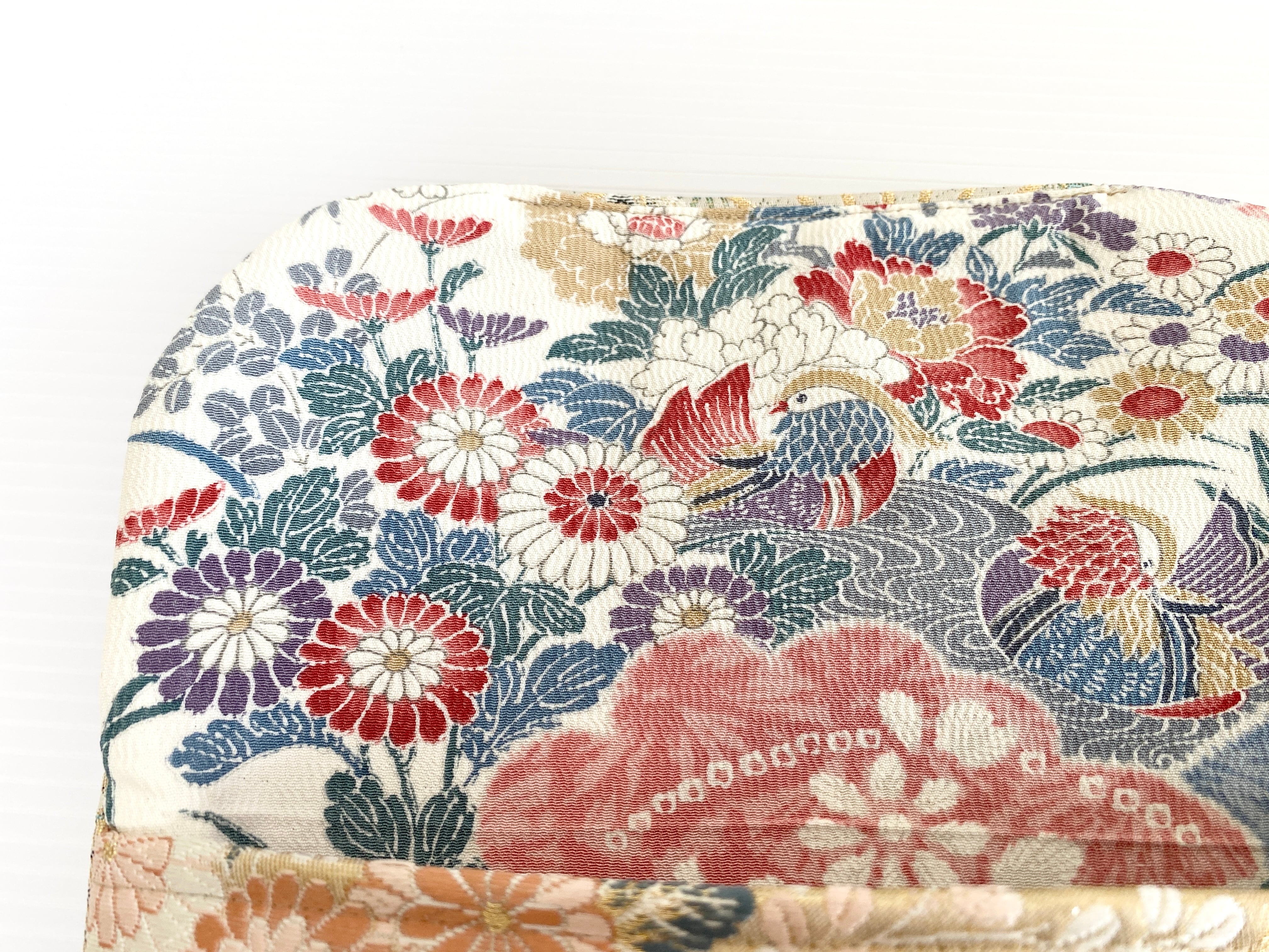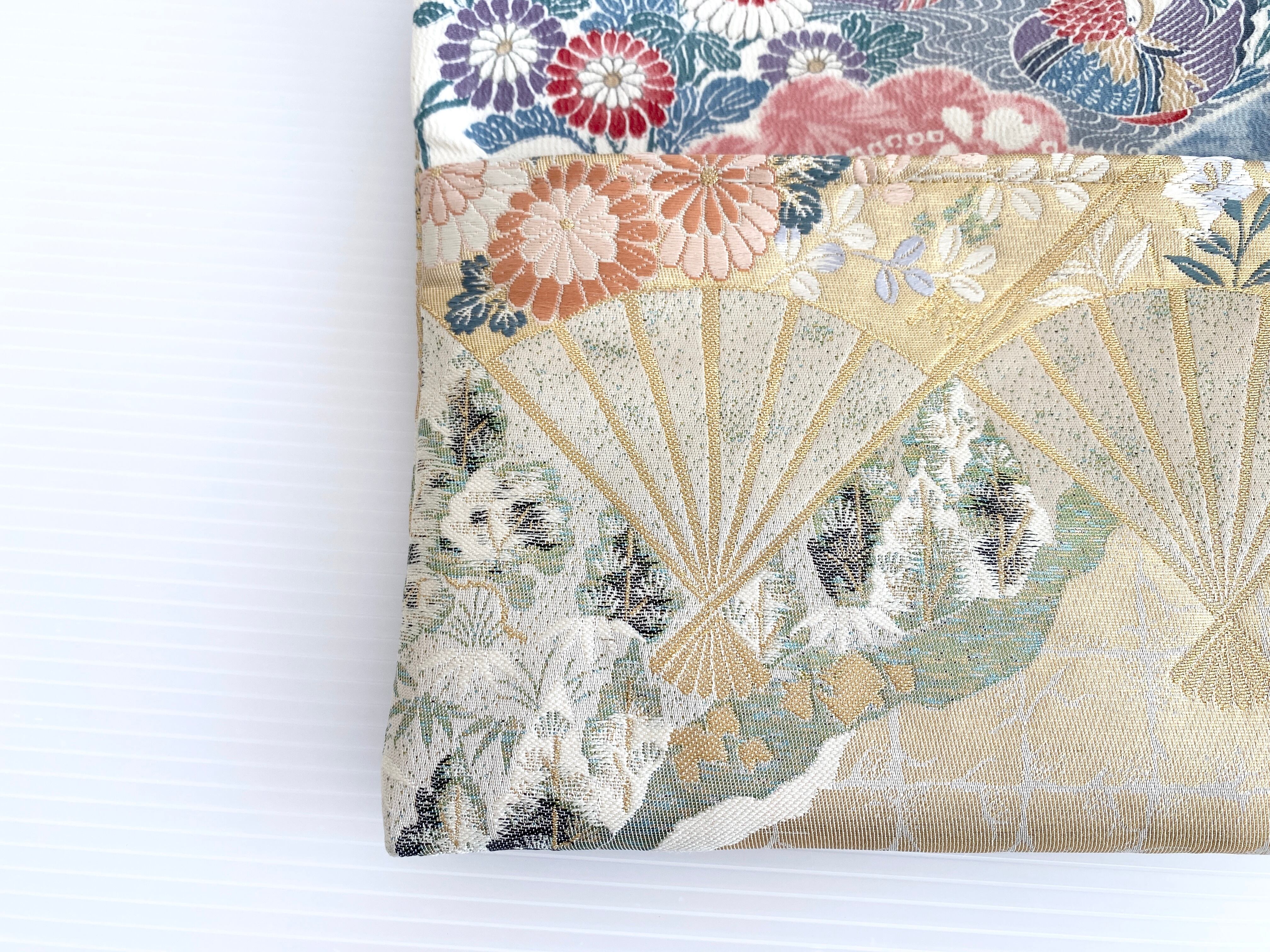 触り心地が滑らかで手にしっくりとくる安心感。絵柄の鮮やかさは日本の帯ならではの存在感で素晴らしく華やかな美しさです。
