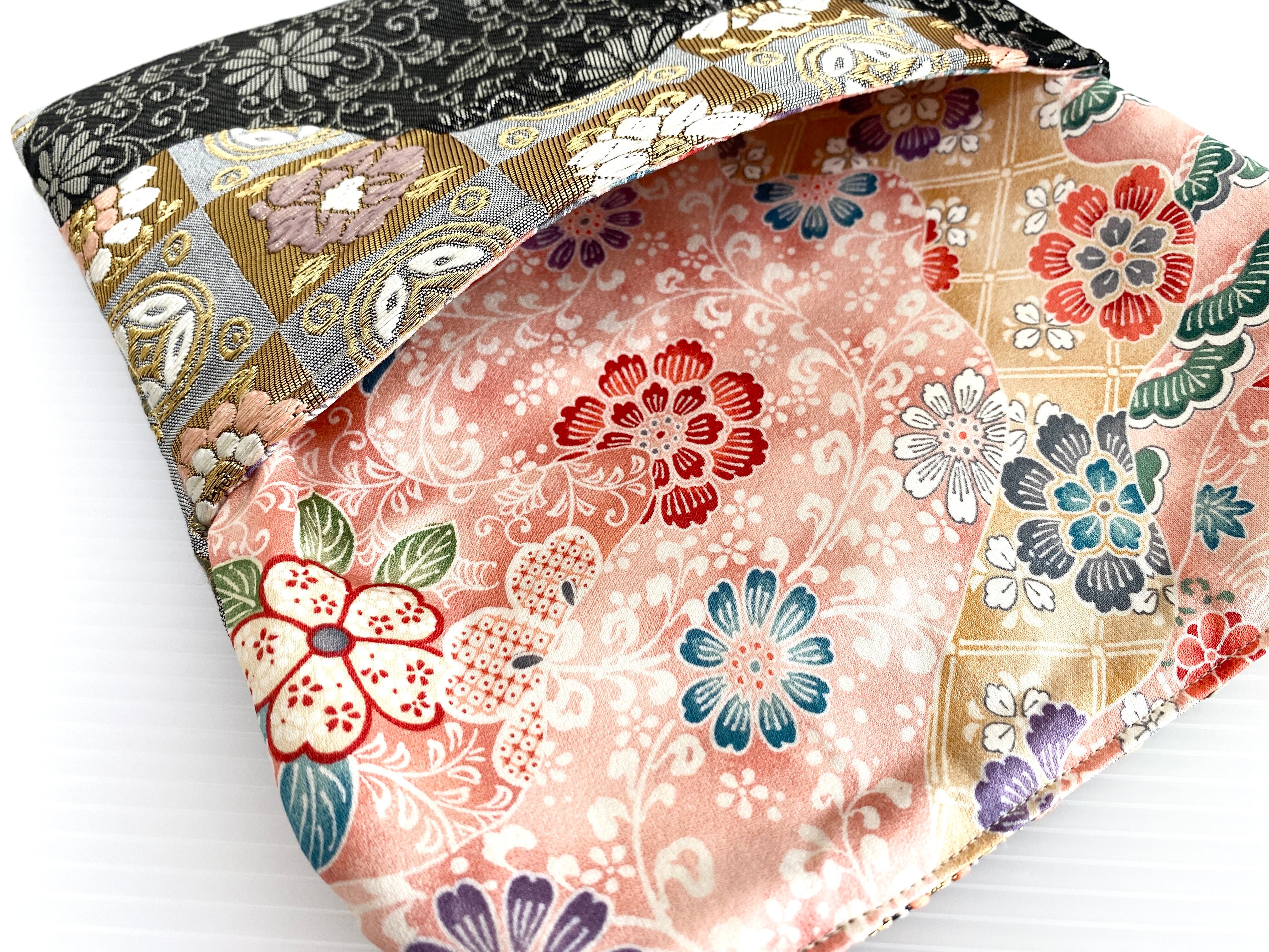 商品はハンドメイド職人が1点1点丁寧に仕上げております。生地の検品は厳選し注意して行っておりますが古帯や古着物をリメイクという特性上、生地にごく多少の難(糸や生地の擦れ折りシワ針穴など等)がある物もございます。ですが販売するにあたりよほどのシミや糸ほつれ・臭いのあるものは使用しておりませんのでご安心頂き着物帯リメイクをご理解・ご了承のうえ購入して頂きますようお願い致します。