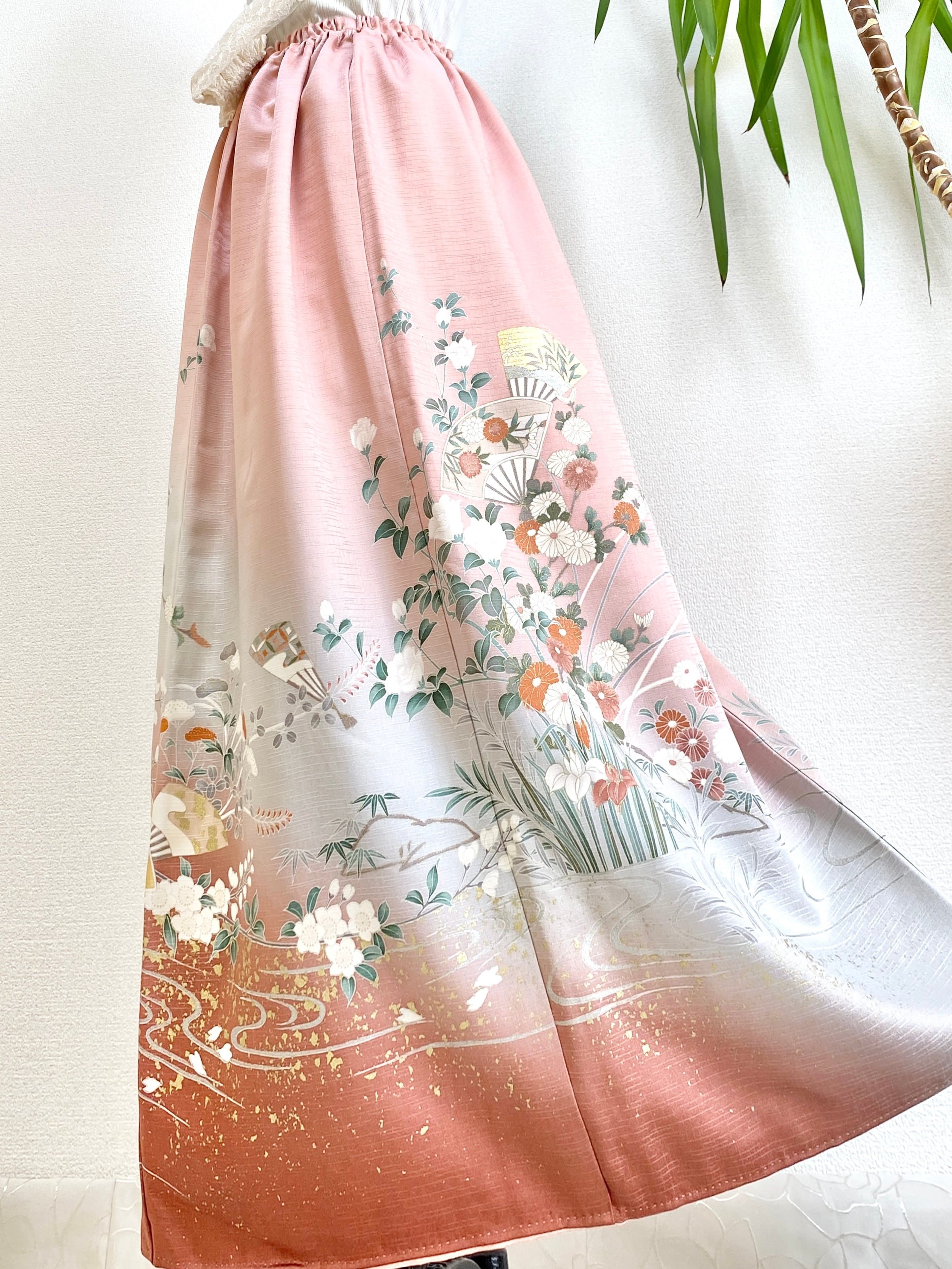 大人可愛いセレブ着物スカートフリーサイズ1点物着物リメイクウエストゴムロングスカートフリーサイズ送料込みハンドメイドNO.2653