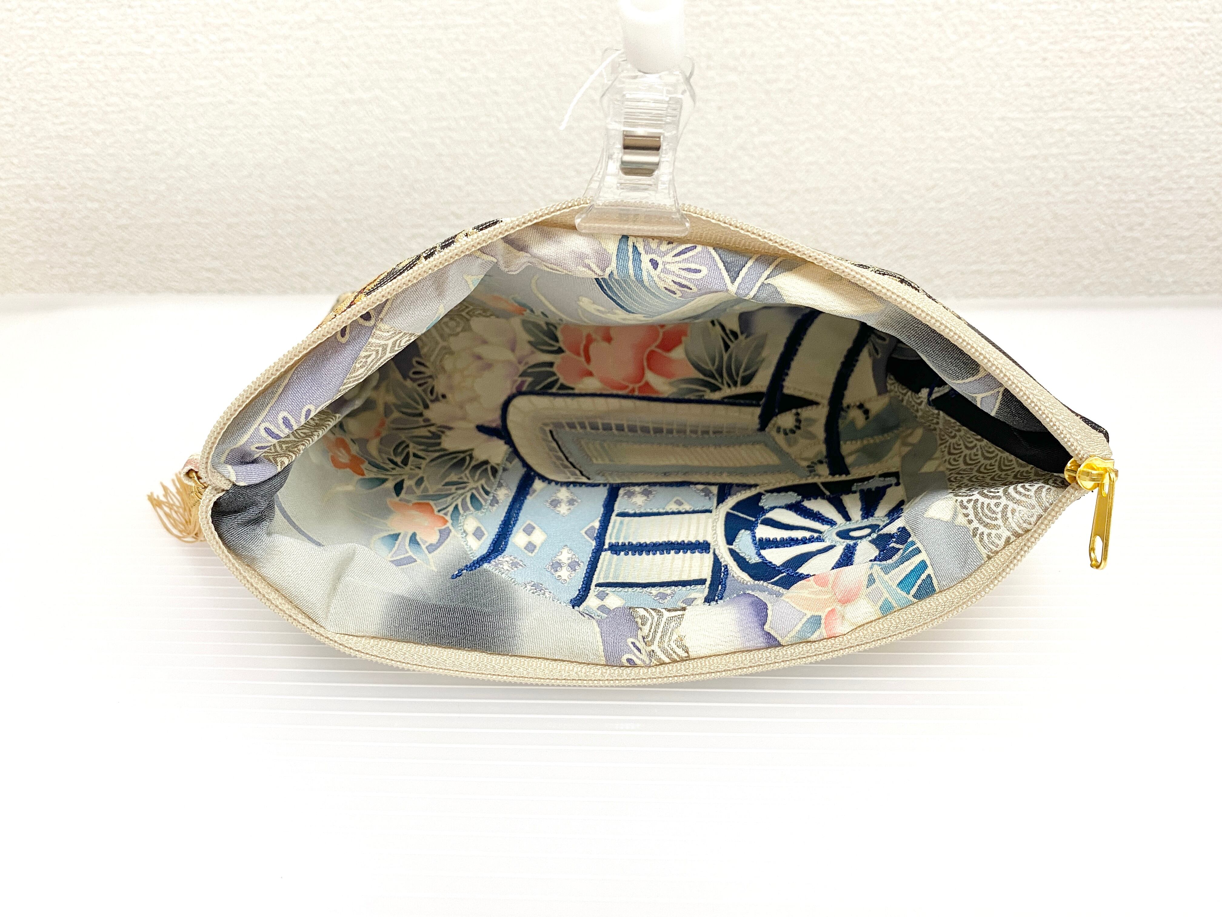 内側の裏生地にも着物布を使用しておりますのでしっかりとした造りの帯リメイクポーチです。
