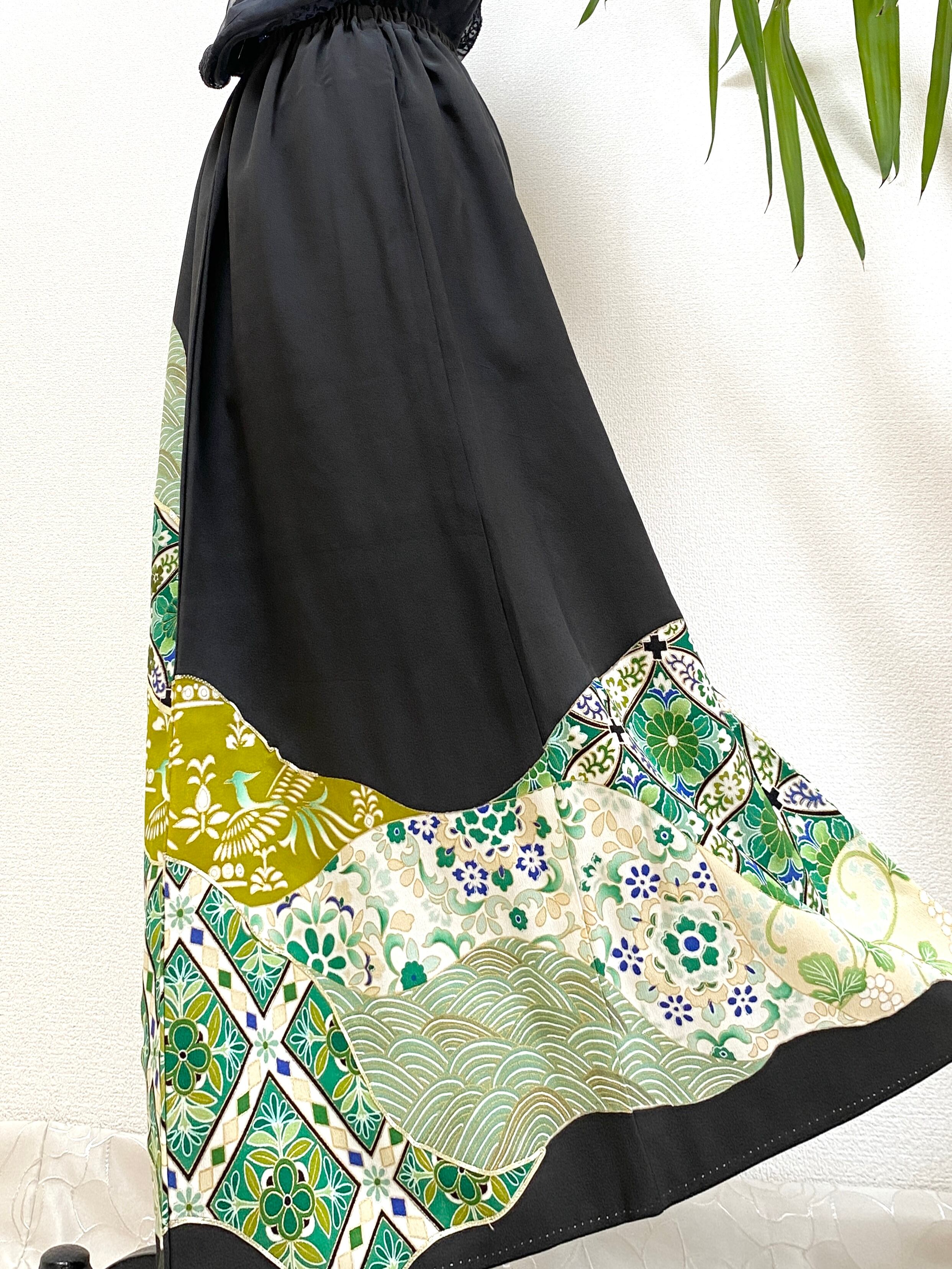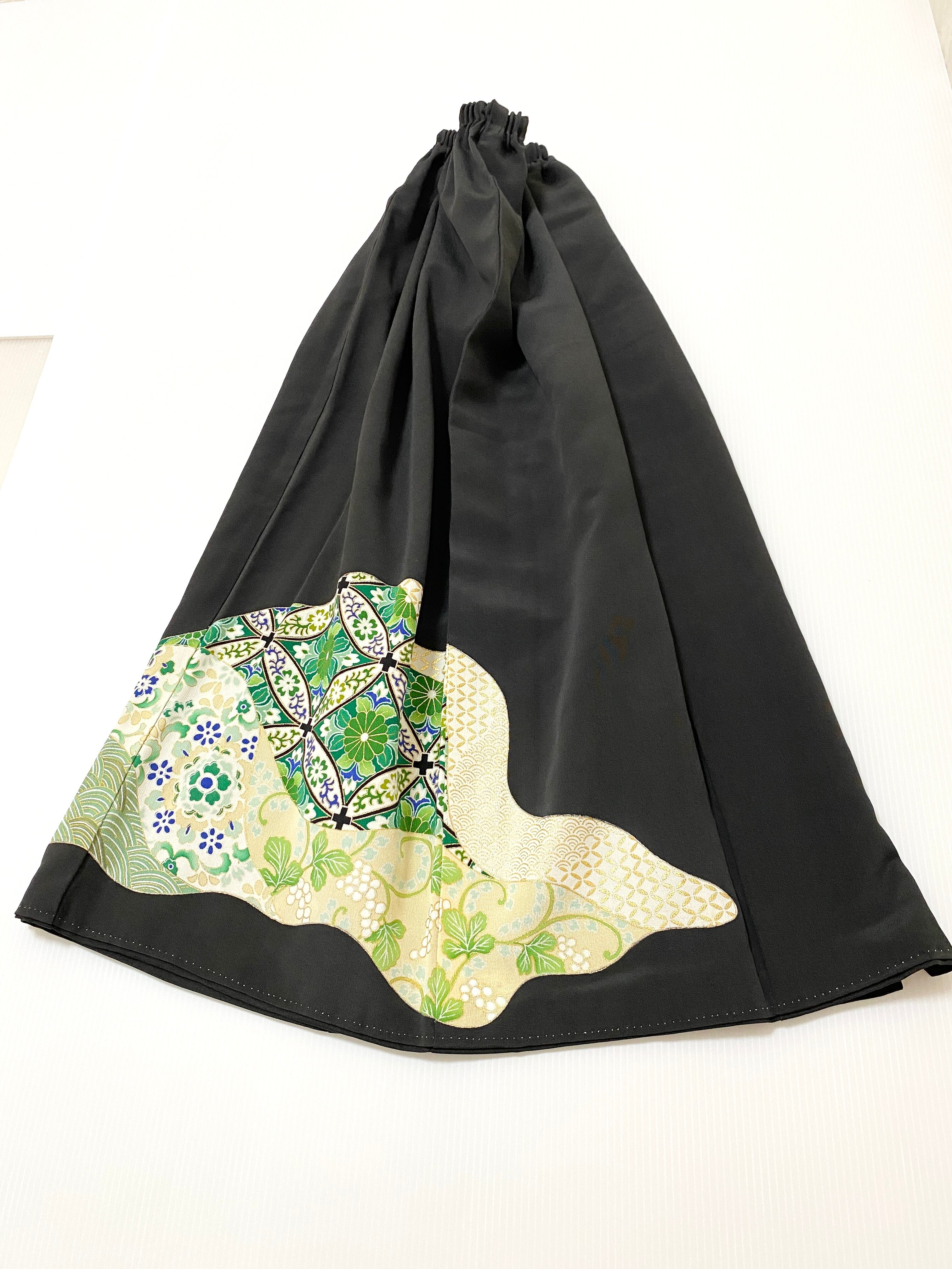 大人可愛いセレブ着物スカートフリーサイズ黒留袖着物リメイクウエストゴムロングスカート