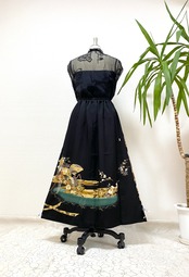 黒留袖着物をリメイクして作製したウエストゴムロングドレススカートフリーサイズです。