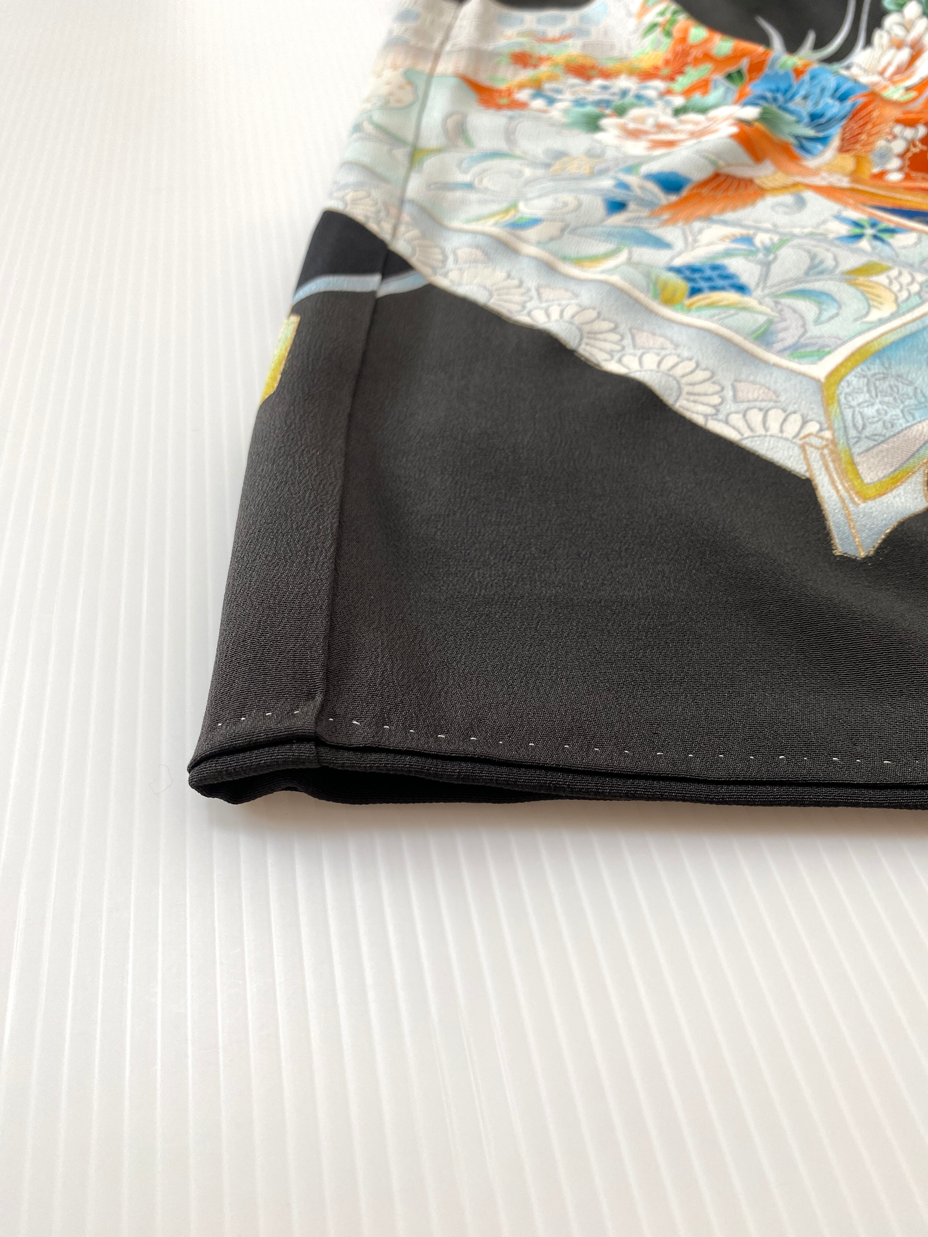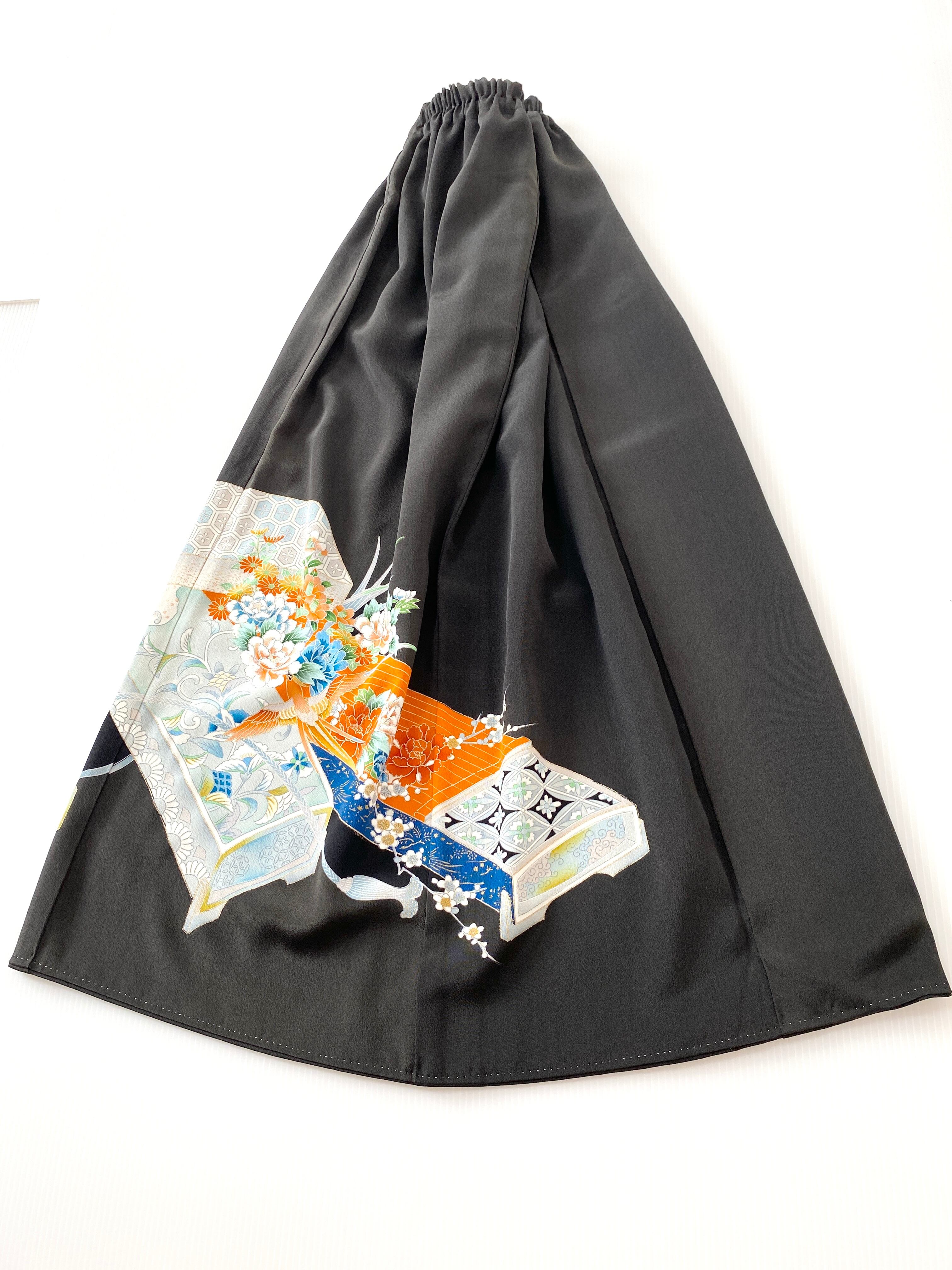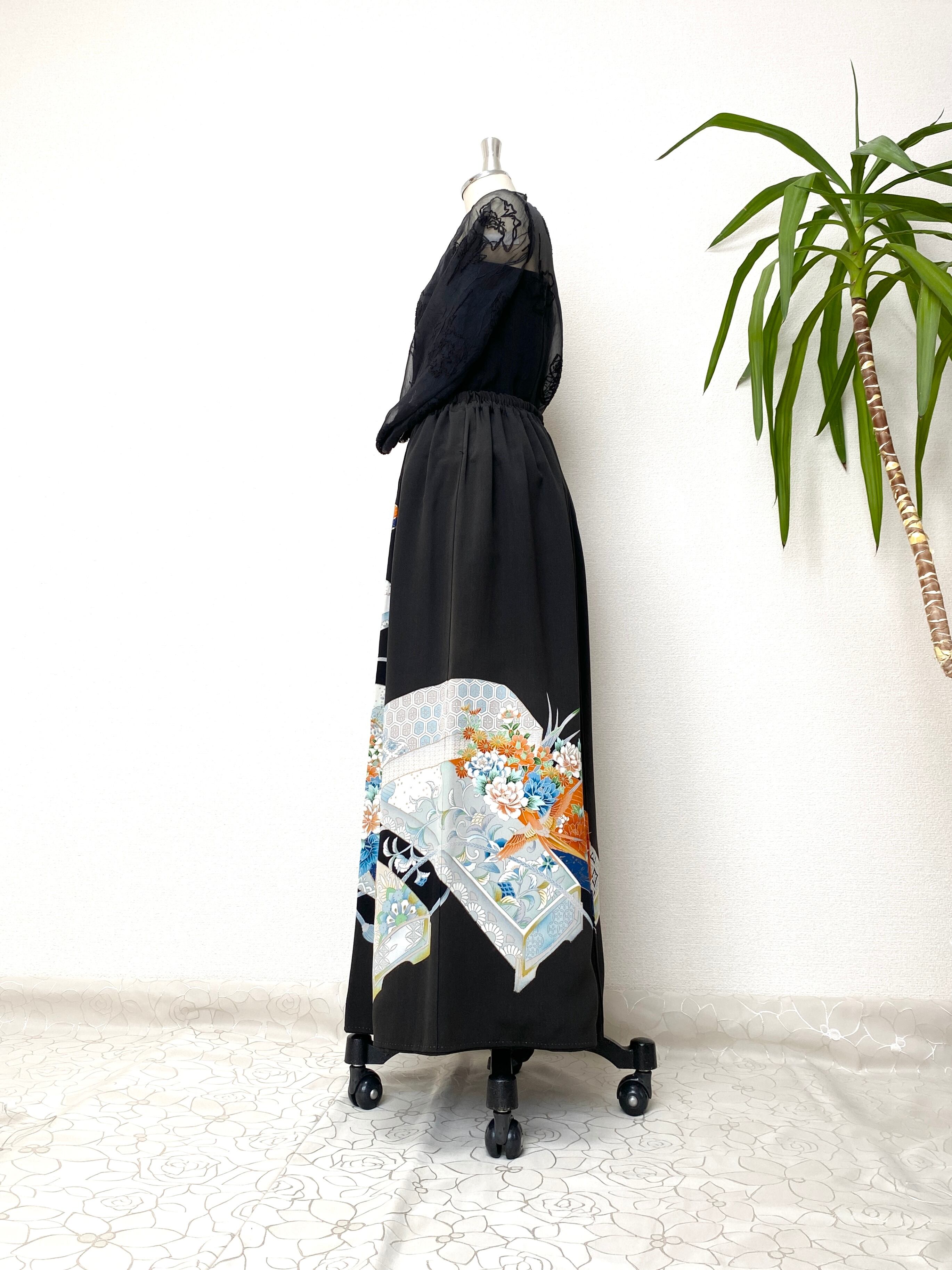 大人可愛いセレブ着物スカートフリーサイズ黒留袖着物リメイクウエストゴムロングスカート